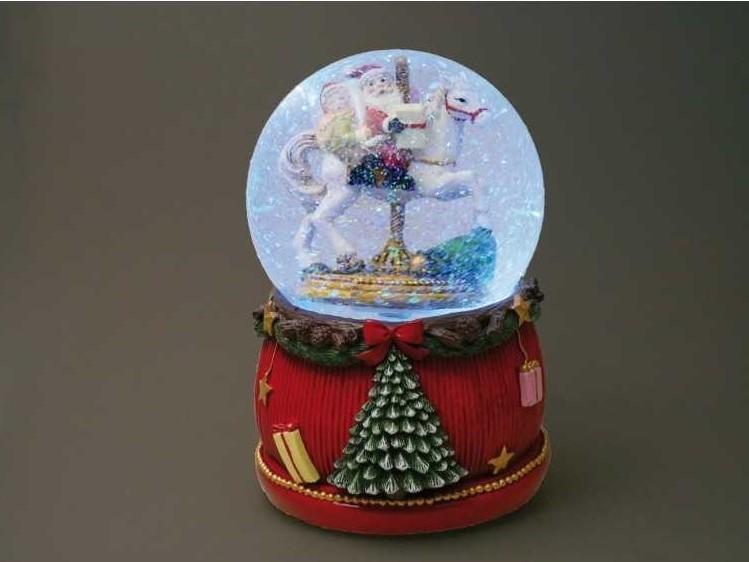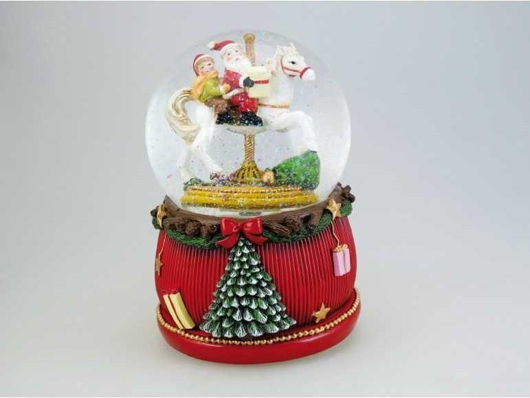 Χιονόμπαλα (διάμετρος 150mm) από επεξεργασμένη ριτίνη, η σκηνή περιστρέφεται και το glitter αναδευεται αυτόματα υπο τον ήχο 8 διαφορετικών χριστουγεννιάτικων μελωδιών