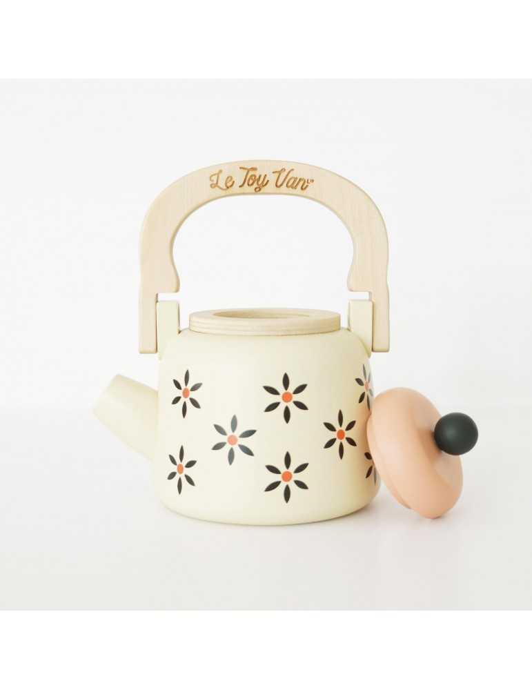 Ο ξύλινος βραστήρας είναι ένας γοητευτικός χρόνος παιχνιδιού σύντροφος, στολισμένος με λεπτεπίλεπτα έργα τέχνης χλωρίδας. Αποπνέει μια διαχρονική ομορφιά που θα σαγηνέψει νεαρά μυαλά. Βαμμένο σε μη τοξικό με βάση το νερό κρεμ χρώμα για τα μικρά σας, είναι αισθητικά ευχάριστο όσο και ασφαλές. Κατασκευασμένο από FSCTM – πιστοποιημένο ξύλο, ο βραστήρας διαθέτει λαβή έκχυσης με χαραγμένες λεπτομέρειες, μαζί με ένα αφαιρούμενο καπάκι που ενισχύει την διαδραστική πτυχή.