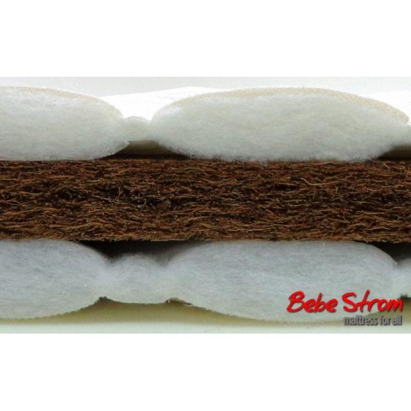 Στρώμα παρκοκρέβατου 4 cm κοκοφοίνικα και ύφασμα καπιτονέ με λευκή βάτα.