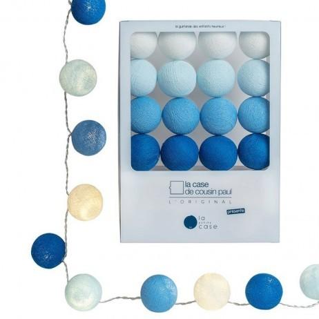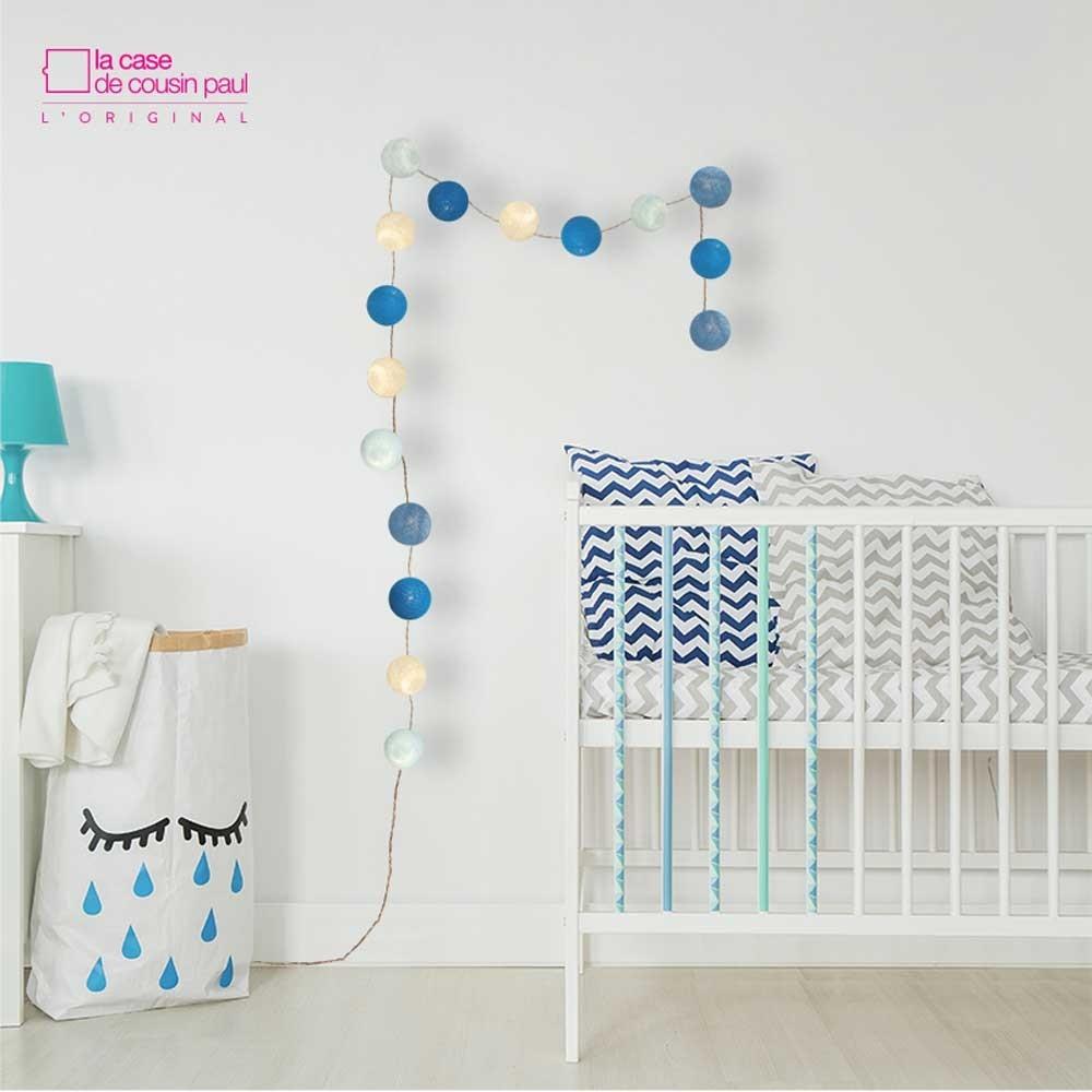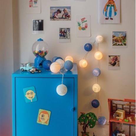 Πρόκειται για μια γιρλάντα διακόσμησης δωματίου με φωτάκια από την εταιρεία La Case De Cousin Paul. Δώστε άλλο αέρα και χρώμα στο χώρο γύρω σας με χαμηλό φωτισμό, για ήρεμη ατμόσφαιρα και όμορφη διακόσμηση, αλλά και για πιο εύκολο και γρήγορο ύπνο το βράδυ! Η γιρλάντα αποτελείται από 16 μπάλες από πολυεστέρα διαμέτρου 5,5 εκατοστών, διαφανές καλώδιο και μετασχηματιστή USB. Κάθε λυχνία LED είναι εξοπλισμένη με ένα μικρό πλαστικό κομμάτι που κρατάει τέλεια τη μπάλα πάνω στο καλώδιο. Η γιρλάντα διαθέτει χρονοδιακόπτη που κλείνει αυτόματα μετά από 3 ώρες και νυχτερινή λειτουργία με 2 εντάσεις φωτεινότητας (50% & 100%). Διαστάσεις: μήκος καλωδίου 1,50 μ. (από την πρώτη έως την τελευταία λάμπα LED συν 1,50 m από το μετασχηματιστή στην πρώτη λάμπα LED) Απόσταση μεταξύ λαμπών: 10 εκ.
