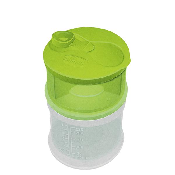 Ο δοσομετρητής σκόνης γάλακτος της Chicco αποτελείται από 2 δοχεία το κάθε ένα φτιαγμένο να ικανοποιεί τις ανάγκες της μητέρας και του μωρού σε κάθε φάση της ανάπτυξής του. Τους πρώτους μήνες μπορείτε να έχετε έτοιμες τις δόσεις γάλακτος του παιδιού σας. Στο δεύτερο δοχείο μπορείτε να βάλετε ξεχωριστά τα snack του παιδιού σας (φρούτα, ομογενοποιημένες τροφές, γιαούρτια). Αφαιρώντας τα εσωτερικά διαχωριστικά τα δύο δοχεία μπορούν να χρησιμοποιηθούν σαν απλά δοχεία αποθήκευσης φαγητού. Μπορούν να χρησιμοποιηθούν και στον φούρνο μικροκυμάτων, αφού αφαιρεθεί το καπάκι τους.
