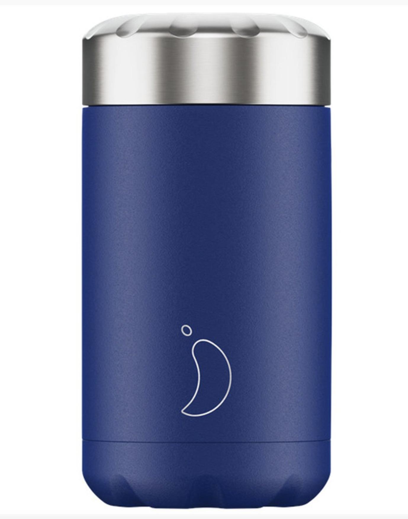 Θερμός φαγητού χωρητικότητας 500ml, σε μπλε ματ χρώμα της εταιρείας Chilly’s. Είναι κατασκευασμένο από ανθεκτικό ανοξείδωτο ατσάλι 304, απαλλαγμένο από BPA. Έχει διπλό τοίχωμα με κενό αέρος και έχει καπάκι που κλείνει αεροστεγώς αποτρέποντας διαρροές. Δεν χρειάζεται να χρησιμοποιήσετε φούρνο μικροκυμάτων ή κάποια άλλη συσκευή για να ζεστάνετε το φαγητό σας καθώς το διατηρεί ζεστό για 4 ώρες. Για καλύτερα αποτελέσματα, βυθίστε το θερμός σε ζεστό νερό πριν τοποθετήσετε το φαγητό που θέλετε να κρατήσετε ζεστό. Ακόμη, διατηρεί δροσερά τα φρούτα, τα λαχανικά, το γιαούρτι και ότι άλλο επιθυμείτε για 4 ώρες υπό οποιεσδήποτε καιρικές συνθήκες, χωρίς να χρειάζεται να το τοποθετήσετε σε ισοθερμική θήκη ή ψυγείο. Είναι βαμμένο με την μέθοδο powder coating που προσφέρει μεγάλη διάρκεια ζωής χρώματος. Κατάλληλο για φρουτόκρεμες και σούπες μωρού αλλά και γεύματα ενηλίκων. Ιδανικό για να το έχετε μαζί σας σε κάθε έξοδό σας.