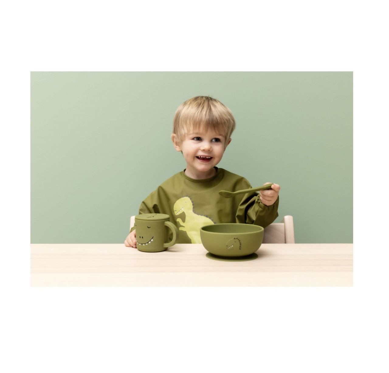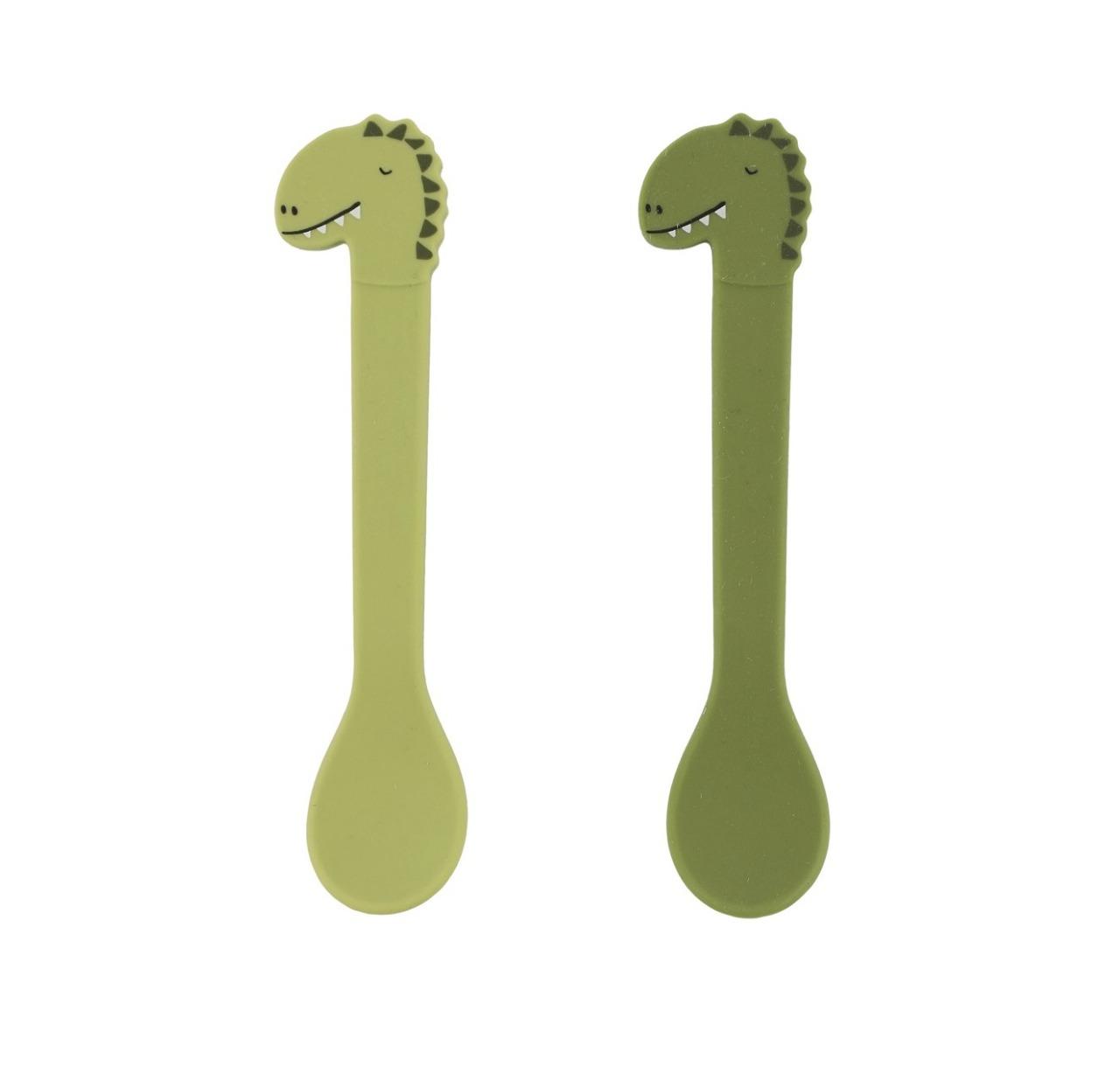 Δύο πολύχρωμα κουτάλια με πρόσωπα ζώων για να απολαύσετε το γεύμα σας! Αυτά είναι τα ιδανικά κουτάλια για να ταΐσετε το παιδί σας στερεά τροφή. Τα κουτάλια είναι επίσης εξαιρετικά για παιδιά που μαθαίνουν να τρώνε μόνα τους. Υπάρχει ένα μέρος από ανοξείδωτο χάλυβα ενσωματωμένο μέσα στο κουτάλι για στιβαρότητα και για να το διατηρεί ίσιο. Αυτός είναι ο λόγος για τον οποίο αυτό το προϊόν αποτελεί εξαίρεση στην υπόλοιπη σειρά σιλικόνης και δεν μπορεί να χρησιμοποιηθεί στον φούρνο μικροκυμάτων. Η σιλικόνη είναι ιδανική για χρήση στην κουζίνα. Δεν σπάει και είναι ασφαλές για χρήση στο πλυντήριο πιάτων, στην κατάψυξη και στο φούρνο. Ακόμη και με εντατική χρήση, τα επιτραπέζια σκεύη θα παραμείνουν σε καλή κατάσταση και μπορούν εύκολα να δοθούν μετέπειτα σε μικρά αδέρφια ή φίλους. Η σιλικόνη 100% ποιότητας τροφίμων συμμορφώνεται με όλα τα ευρωπαϊκά πρότυπα ασφαλείας.