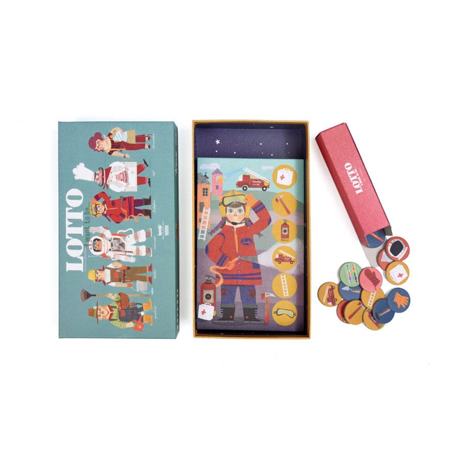 Ένα παιχνίδι λόττο για μικρά αλλά και μεγάλα παιδιά! Νικητής είναι ο παίκτης ο οποίος θα καταφέρει να συμπληρώσει πρώτος την καρτέλα του. Το κουτί περιλαμβάνει 6 καρτέλες επαγγελμάτων και 36 κάρτες με τα αντικείμενα του κάθε επαγγέλματος. Διαστάσεις καρτέλας: 14 x 22 εκ. Διαστάσεις κουτιού: 27,5 x 15 x 4,5 εκ.
