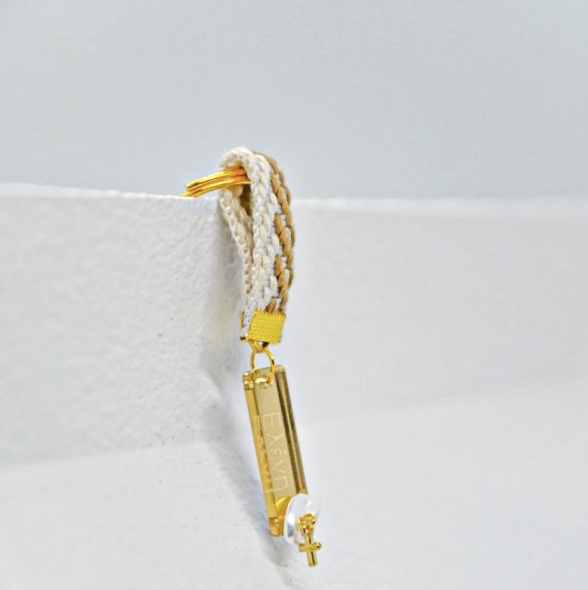 Μπρελόκ με επίχρυσο σταυρουδάκι και πλέξι.(δυνατότητα προσωποποιημένου μηνύματος)
