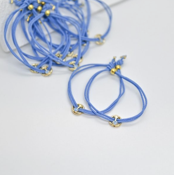 Βραχιόλι με μεταξωτό κορδόνι και επίχρυσο σταυρό με σμάλτο ματάκι.
