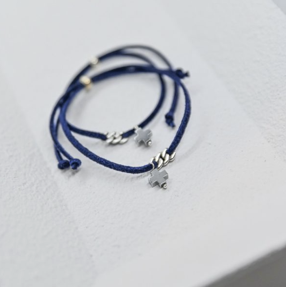 Βραχιόλι σουέτ με επάργυρο αλυσιδάκι και επάργυρο σταυρό.