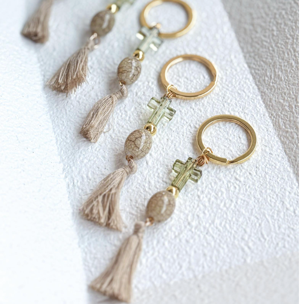 Μπρελόκ με χάντρα οβάλ κρακελέ και ακρυλικό σταυρό!