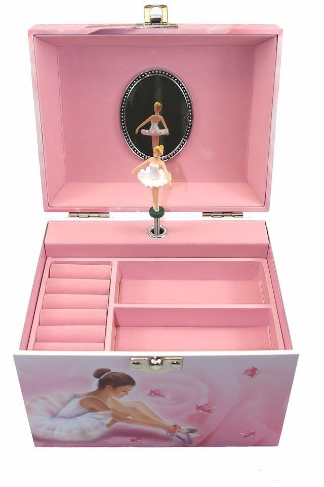 Ένα κουτί σε σχήμα τσαντάκι με χειρολαβή από λευκές περλίτσες της γαλλικής εταιρείας trousselier. Μια όμορφη μπαλαρίνα χορεύει όταν χειρίζεστε τη μουσική κίνηση που βρίσκεται στο πίσω μέρος του κουτιού. Μουσική: Un jour mon prince viendra του F. Churchill.