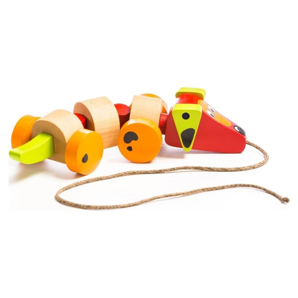 Ξύλινη τρεχαλίτσα ‘Σκυλάκι’από την εταιρεία Ciubika. Διαθέτει μοναδικό σχεδιασμό και έχει φωτεινά χρώματα, τα οποία θα προσελκύσουν το ενδιαφέρον κάθε παιδιού. Αποτελείται από ξύλινα στοιχεία οξιάς διασυνδεδεμένα με ασφάλεια, με τροχούς και ένα μακρύ κορδόνι. Το μοντέλο έχει επικάλυψη ειδικού μη τοξικού σμάλτου με βάση το νερό. Κατά τη διάρκεια του παιχνιδιού, το παιδί θα αναπτύξει συντονισμό, λογική σκέψη, φαντασία και αισθητική αντίληψη. Διαστάσεις 22 x 4,5 x 7 εκ. Ηλικία 1,5-3 ετών.