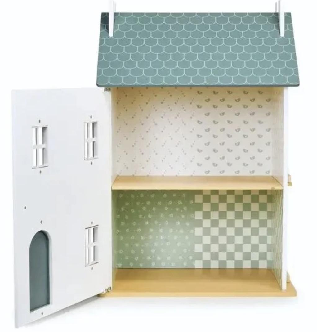 Το νέο κουκλόσπιτο της Mentari είναι λευκό με μπλε οροφή και διαθέτει ξύλινα παραθυρόφυλλα που μπορούν να ανοίξουν και να κλείσουν και είναι διακοσμημένο με όμορφες εικονογραφήσεις, τόσο εσωτερικά όσο και εξωτερικά.
