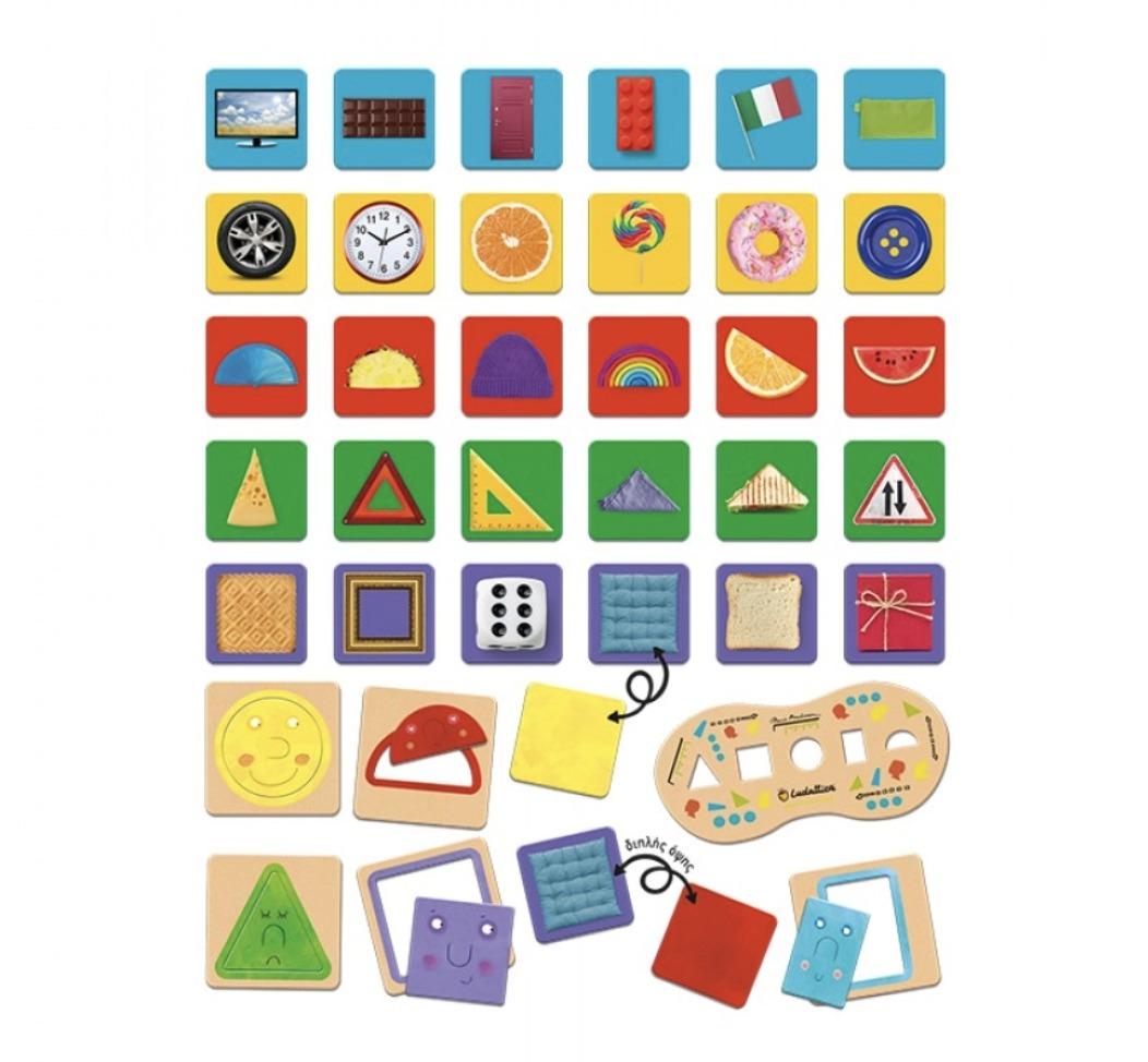 Ένα παιχνίδι εμπνευσμένο από την εκπαιδευτική μέθοδο Μοντεσσόρι που μετατρέπει την εκμάθηση της γεωμετρίας σε διασκέδαση! Μέσω της παρατήρησης και του παιχνιδιού με τα κομμάτια, το παιδί μαθαίνει να αναγνωρίζει βασικά γεωμετρικά σχήματα. Οι που περιλαμβάνονται είναι διπλής όψεως, στη μια μεριά απεικονίζεται το γεωμετρικό σχήμα και στην άλλη, μια φωτογραφία ενός αντικειμένου από τη καθημερινότητα του παιδιού που έχει το σχήμα αυτό.
