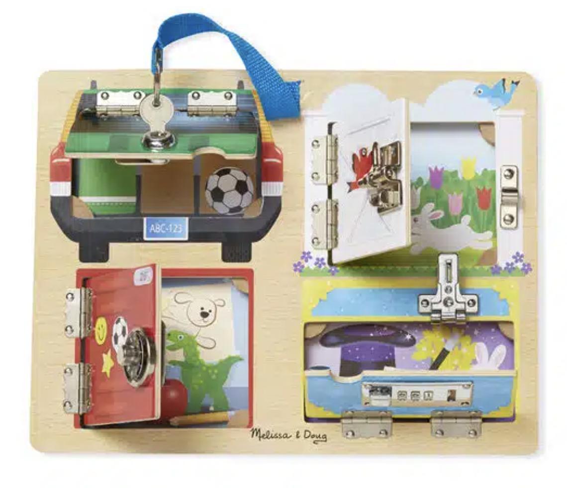 Ξεκλειδώστε, ανοίξτε και διασκεδάστε με τις εικόνες πίσω από αυτές τις πόρτες. Είναι ένα παιχνίδι και η εκμάθηση σε ένα. Τα παιδιά θα μάθουν να δημιουργούν ιστορίες εμπνευσμένες από αυτά που βρίσκουν πίσω από την πόρτα και θα μάθουν για διαφορετικούς τρόπους κλειδώματος. Εξαιρετικό παιχνίδι για ανάπτυξη κινητικών δεξιοτήτων, συντονισμό ματιού-χεριού, εκμάθηση χρωμάτων, αριθμών, ζώων και πολλά άλλα.