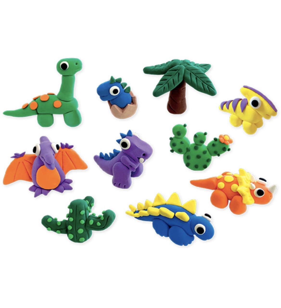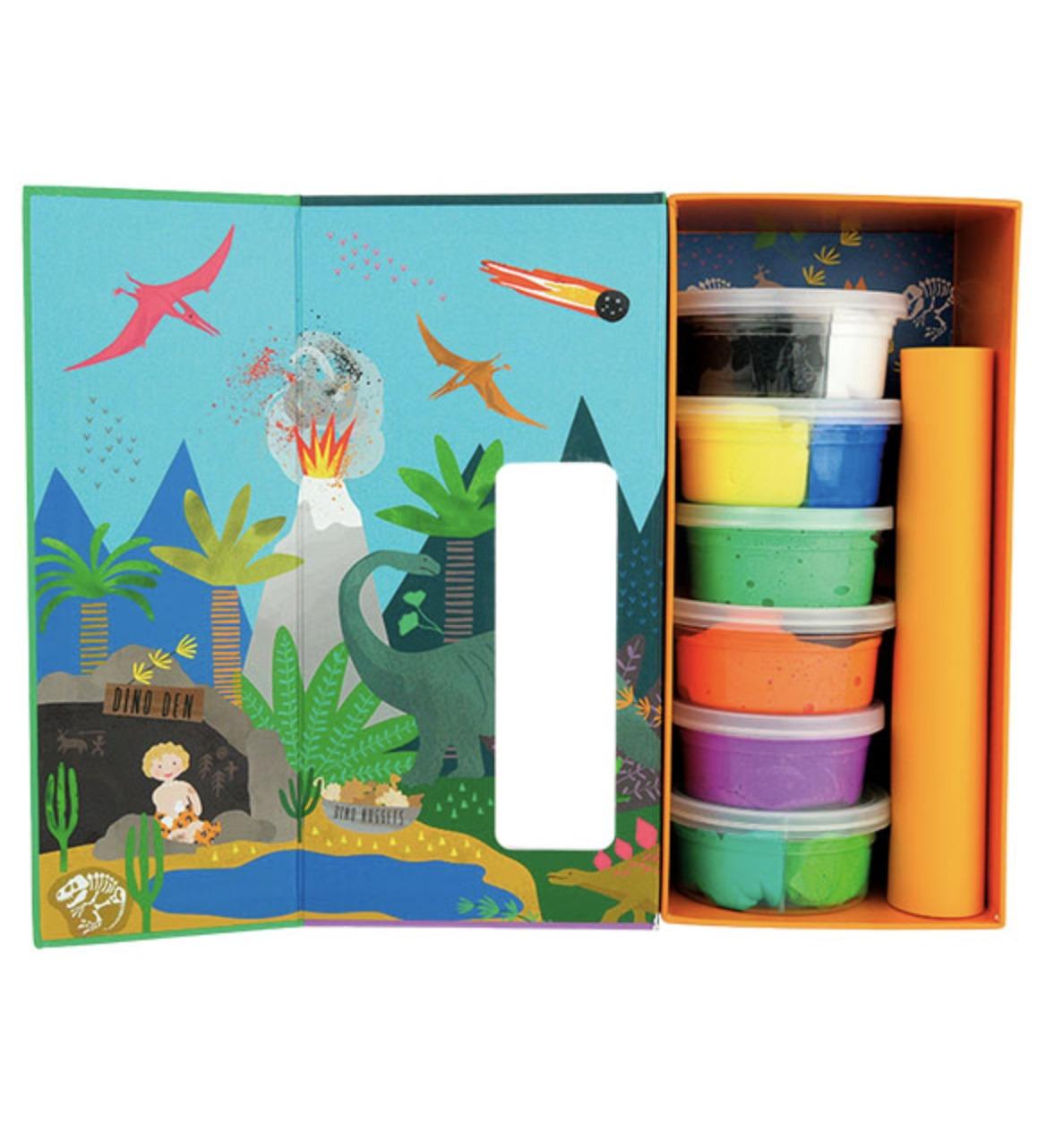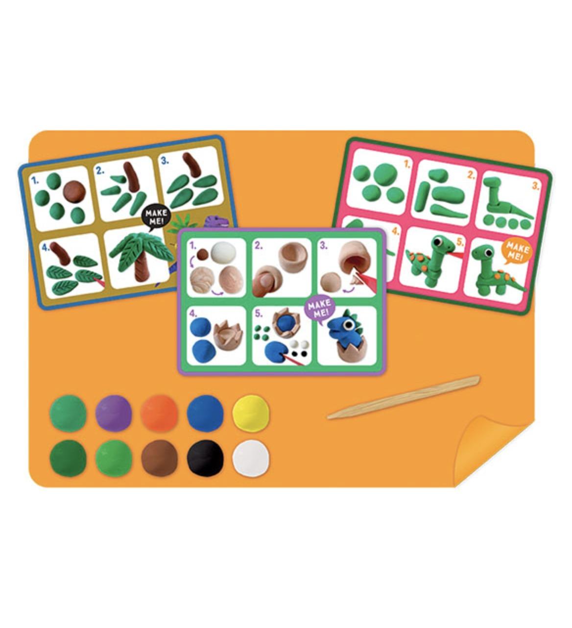 Περιλαμβάνει 10 ζωηρά χρώματα από πηλό, 10 κάρτες ιδεών με θέμα τους δεινόσαυρους και ένα ανθεκτικό χαλάκι δραστηριότητας σιλικόνης για διασκέδαση χωρίς προβλήματα. Τα παιδιά μπορούν να ακολουθήσουν τους οδηγούς για να σμιλέψουν T-Rexes, Triceratops και Stegosauruses ή να αφήσουν τη δημιουργικότητά τους να αναλάβει τη σχεδίαση νέων ειδών δεινοσαύρων. Ο μαλακός, εύκολος στη χύτευση πηλός είναι τέλειος για μικρά χέρια, συμβάλλοντας στην οικοδόμηση λεπτών κινητικών δεξιοτήτων και στο παιχνίδι της φαντασίας.