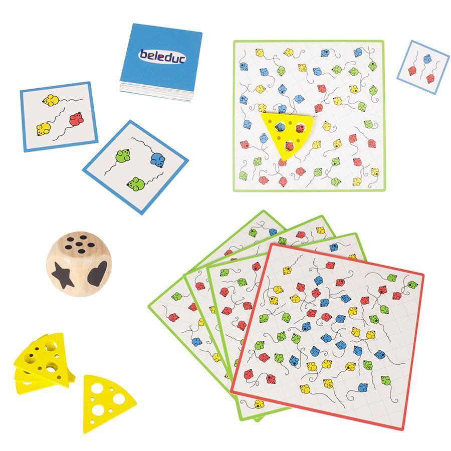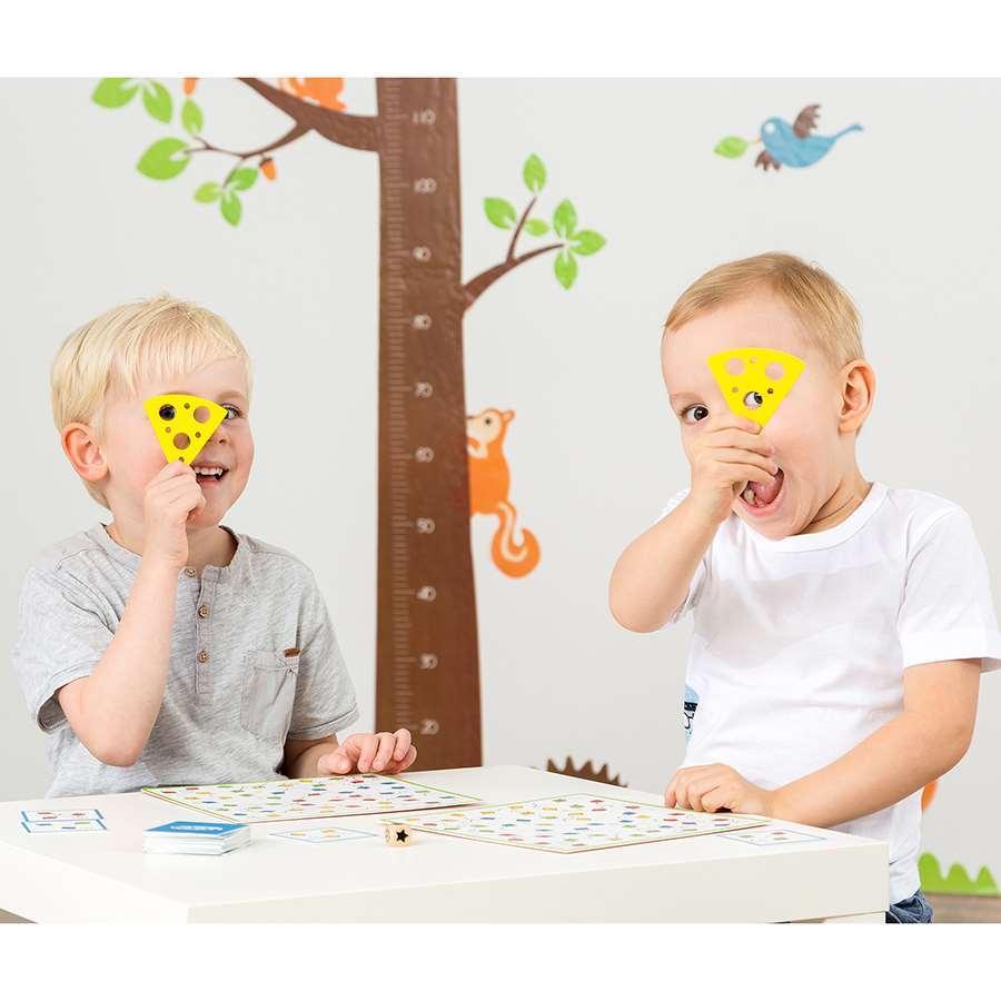 Στην κουζίνα του κάστρου όλα έχουν γίνει άνω κάτω! Ο Βαλεντίν ο μάγειρας ξέχασε να βάλει το τυρί πίσω στο ψυγείο και τώρα υπάρχουν παντού μικρά ποντικάκια που προσπαθούν να το αρπάξουν και να το φάνε! Τα παιδιά πρέπει να βοηθήσουν τον Βαλεντίν να εμποδίσει τα ποντίκια απ’ το να φάνε το τυρί. Για να το καταφέρουν πρέπει να κυλήσουν το τυρί στο ταμπλό και να κυνηγήσουν τα ποντίκια. Ιδανικό για την ανάπτυξη του συντονισμού όρασης-αφής, των κοινωνικών δεξιοτήτων και της δημιουργικότητας. Περιλαμβάνει 4 ταμπλό, 4 μοτίβα τυριού, 16 κάρτες με ποντίκια και ένα ζάρι. Παίζεται με 2-4 παίκτες. Μέση διάρκεια παρτίδας: 10 λεπτά. Διαστάσεις: 24 x 24 x 6.5