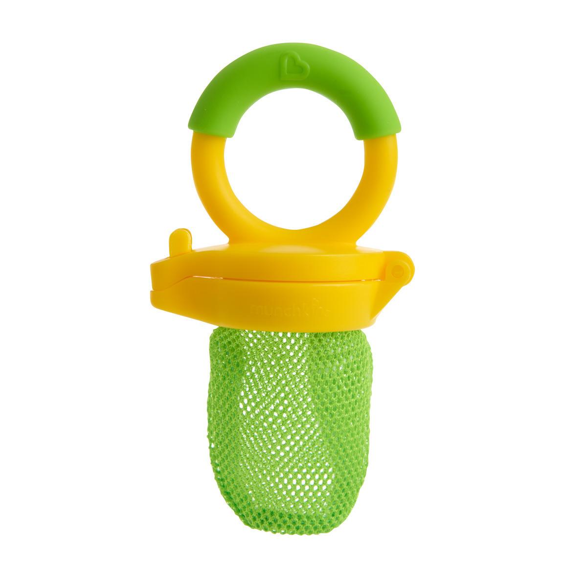 Θέλετε το καλύτερο για το μωρό σας και, επομένως, θέλετε να εντάξετε στη διατροφή του φρέσκα φρούτα, λαχανικά και πολτούς. Χάρη στην πιπίλα Fresh Food Feeder της Munchkin, το μωρό σας μπορεί να απολαμβάνει υπέροχα σνακ, χωρίς καμία ανησυχία. Με απλή σχεδίαση με δίχτυ, αυτή η εύχρηστη πιπίλα βοηθά τα μωρά χωρίς δόντια να μασούν με ασφάλεια τα τρόφιμα. Τοποθετήστε απλώς κομματάκια φρούτων, λαχανικών ή ακόμη και κρέατος στη σήτα και κουμπώστε την στην πιπίλα. Το μωρό μπορεί να μασήσει, να πιπιλίσει και να γευτεί τη φρεσκάδα των τροφίμων σε μικρά, εύπεπτα κομμάτια, μειώνοντας τον κίνδυνο πνιγμού. Μπορεί να χρησιμοποιηθεί εναλλακτικά προς τα παιχνίδια οδοντοφυΐας. Επίσης, η πιπίλα Fresh Food Feeder διαθέτει μια χρωματιστή, εργονομική λαβή για το μωρό σας, βοηθώντας το να κάνει το πρώτο βήμα, ώστε να μάθει να τρώει μόνο του.