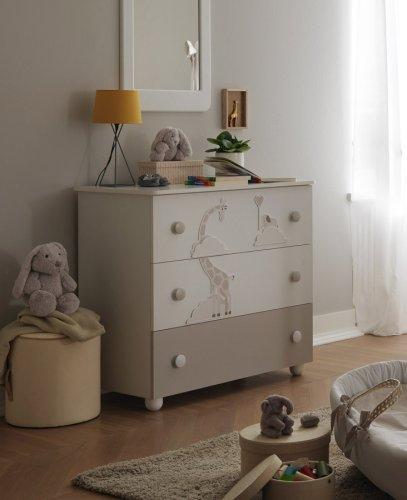 Η συρταριέρα της σειράς διαθέτει 3 ευρύχωρα, πρακτικά συρτάρια, ώστε να χωράει τα πράγματα του μωρού σας, ενώ η μεγάλη επιφάνειά της προσφέρει τη δυνατότητα να τοποθετήσετε αλλαξιέρα και αξεσουάρ του μωρού σας στο πάνω μέρος της.