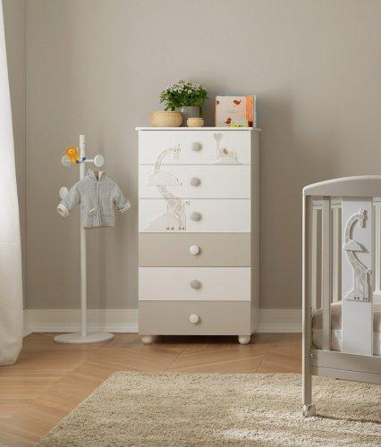 Η συρταριέρα της σειράς διαθέτει 6 ευρύχωρα, πρακτικά συρτάρια, ώστε να χωράει τα πράγματα του μωρού σας, ενώ η στενή αλλά ψηλή της επιφάνεια, την καθιστά ιδανική για μικρά παιδικά δωμάτια.