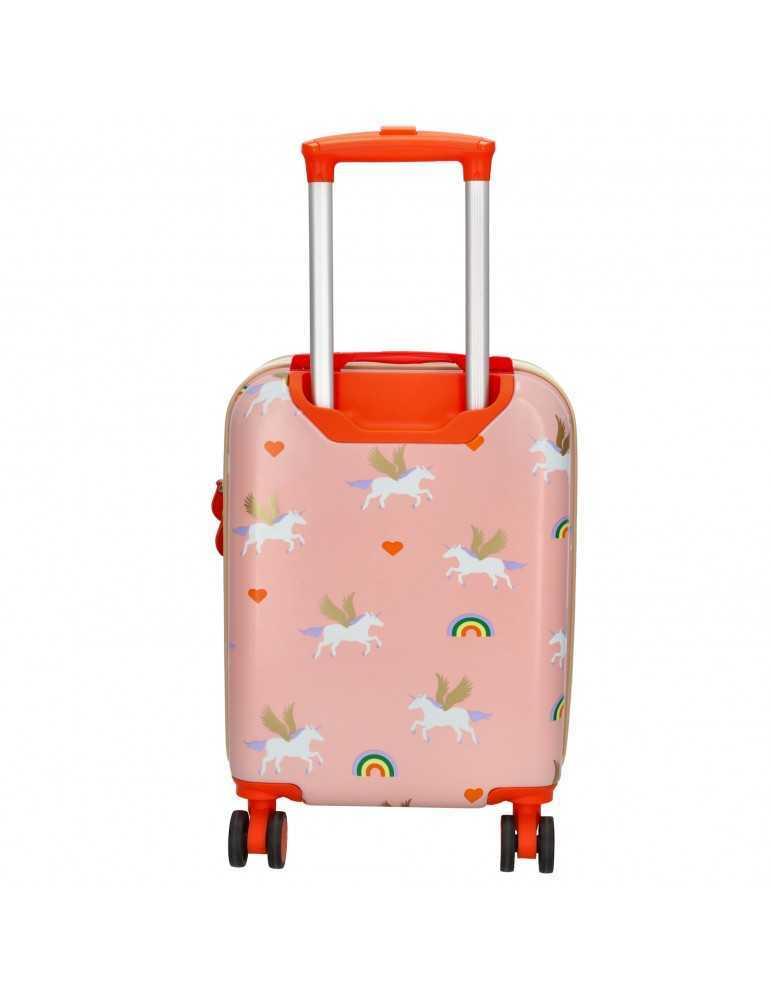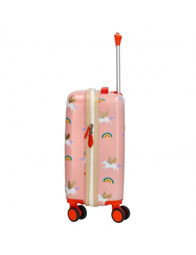 Βαλίτσα πολύχρωμη. Είναι κατασκευασμένη από σκληρό πλαστικό, υλικό που την καθιστά αδιάβροχη και ανθεκτική σε φθορές. Είναι μικρή σε μέγεθος, κατάλληλη για να την μεταφέρετε μαζί σας στην καμπίνα του αεροσκάφους, ειδικά εάν κάνετε συχνά ταξίδια. Οι τέσσερις ρόδες που διαθέτει κινούνται προς όλες τις κατευθύνσεις κάνοντας έτσι τη μεταφορά της πολύ εύκολη. Με διαστάσεις 27 x 38 x 19 εκατοστά, αποτελεί ιδανική επιλογή για το ταξίδι σας με χειραποσκευή.