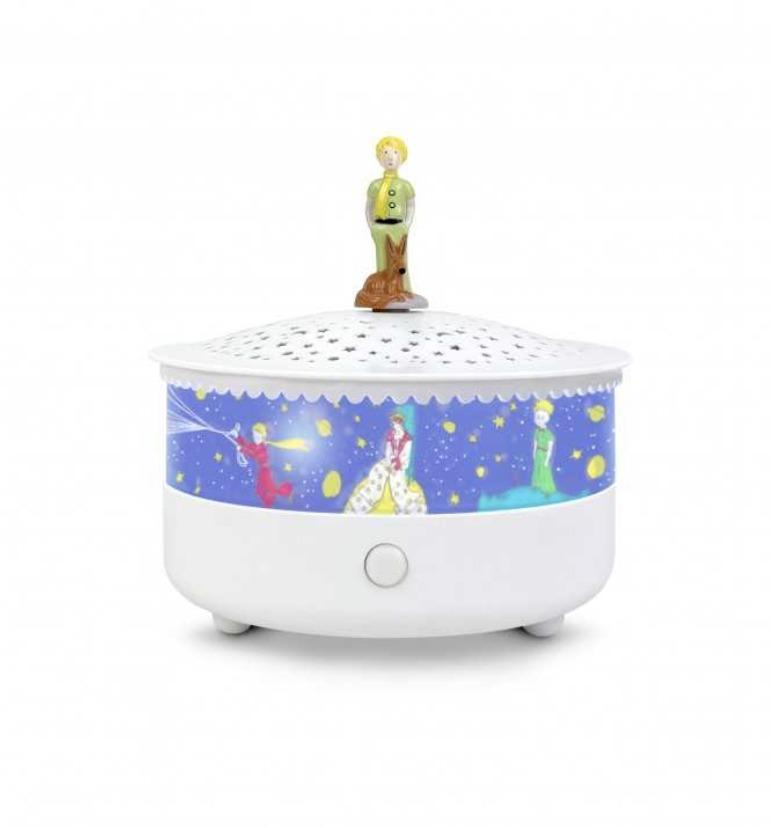 Το νυχτερινό μας φως φωτίζει απαλά το δωμάτιο του παιδιού σας. Μπορείτε να ενεργοποιήσετε την περιστροφή του ειδωλίου, το διακριτική προβολή λευκών αστεριών και χειροκίνητος άνεμος νανουρίστε όπως θέλετε. Για να διατηρήσετε την μπαταρία .Το νυχτερινό φως σβήνει αυτόματα μετά από 15 λεπτά και επανενεργοποιείται σε περίπτωση θορύβου εάν ο «ανιχνευτής κλάματος» η λειτουργία είναι ενεργοποιημένη. Επαναφορτιζόμενη με “micro USB”.