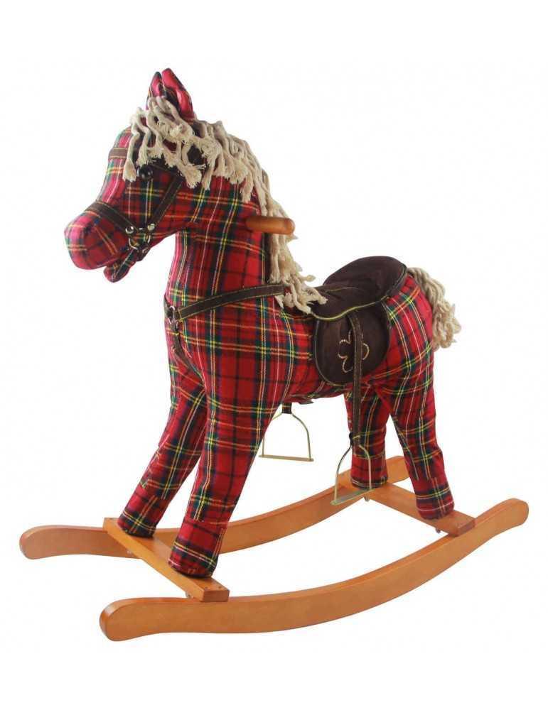 Κουνιστό άλογο κόκκινο καρώ με ήχο, κίνηση στόματος και αναβολείς!!