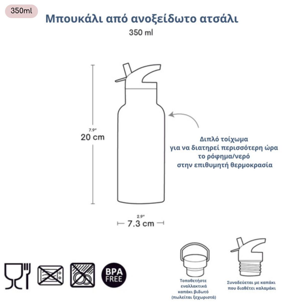 Το μπουκάλι της Little Lovely Company είναι κατασκευασμένο από ανοξείδωτο ατσάλι διπλού τοιχώματος και διατηρεί τα ροφήματα ζεστά ή δροσερά για περισσότερη ώρα.