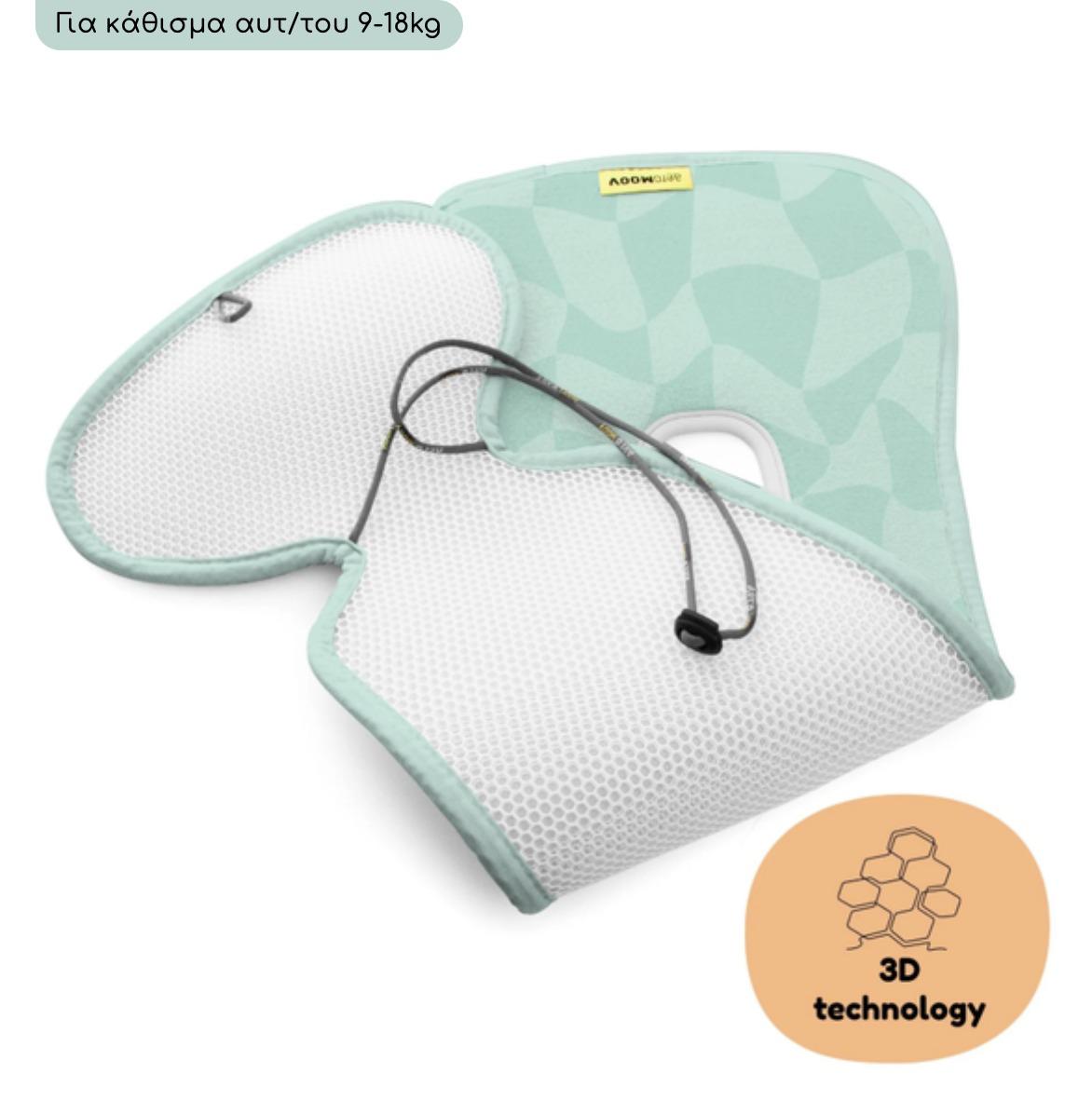 Η 3D κυψελωτή δομή που αποτελείται κατά 90% από αέρα, επιτρέπει στο δέρμα του παιδιού πάντα αναπνέει. Εσωτερικά το κάλυμμα, μοιάζει με κηρήθρα και αυτό έχει σαν αποτέλεσμα, να δημιουργείται ένα στρώμα αέρα, που πάντα μεσολαβεί ανάμεσα στο παιδί και το κάθισμα. Έτσι το παιδί διατηρεί τη σωστή θερμοκρασία σώματος και παραμένει στεγνό και καθαρό απολαμβάνοντας τις βόλτες του!
