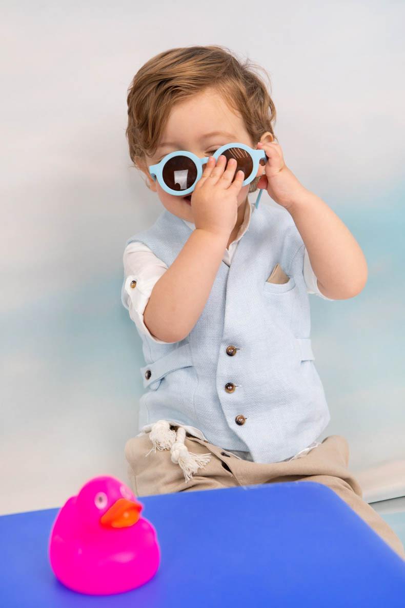 O Antreas είναι ένα σιέλ μπεζ βαπτιστικό σετ για αγόρια ελληνικής ραφής. Γιλέκο σιέλ από λινή γάζα 100% Πουκάμισο από εκρού λινάρι 100% με Μάο γιακά και φουλάρι με μπεζ αστεράκια. Παντελόνι μπεζ rammie ιδιαίτερο κόψιμο και ζώνη. Καπέλο ψάθινο σε φυσικό χρώμα με εκρού κορδόνι.