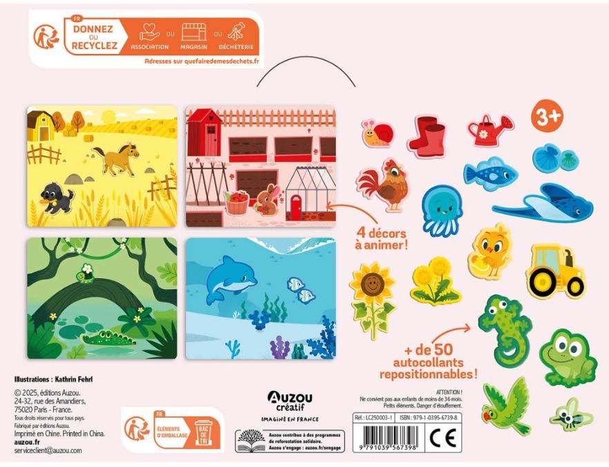 Η συσκευασία περιλαμβάνει 4 πανέμορφες σκηνές που μπορούν να ζωντανέψουν με 50 ανάγλυφα αυτοκόλλητα, ιδανικά για μικρά χεράκια. Τα αυτοκόλλητα είναι επανατοποθετούμενα, δίνοντας τη δυνατότητα στα παιδιά να δημιουργούν και να αναδημιουργούν τη δραστηριότητα ξανά και ξανά, χωρίς όριο στη φαντασία τους!