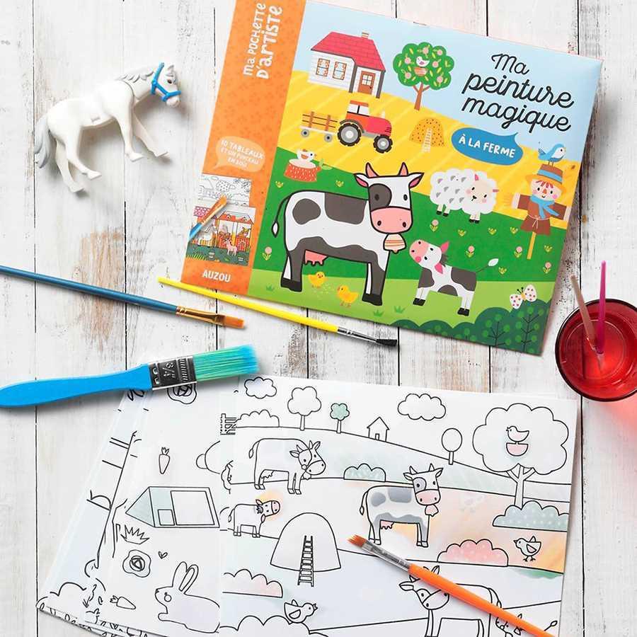 Ανακάλυψε τη ζωή στη φάρμα ολοκληρώνοντας 10 προσχεδιασμένες μαγικές εικόνες !!! Βούτηξε το πινέλο στο νερό, πέρασε το πάνω από την εικόνα και ως διά μαγείας, θα εμφανιστούν τα χρώματα!!! Μόλις στεγνώσει η επιφάνεια, τα χρώματα εξαφανίζονται και μπορείς να ξεκινήσεις την ίδια διαδικασία όσες φορές θέλεις!!! Το σετ περιλαμβάνει ένα ξύλινο πινέλο.