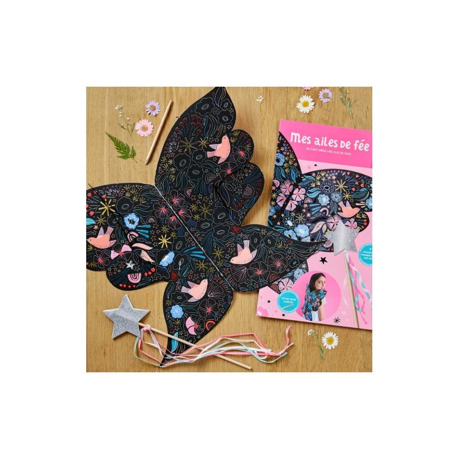 Όλα τα κορίτσια θα λατρέψουν την νέα προσθήκη, στη πολυαγαπημένη σειρά της Auzou «My Activity Pouch», με την οποία θα δημιουργήσουν και θα διακοσμήσουν τα δικά τους, φανταστικά, φτερά και μαγικό ραβδί νεράιδας! Χρησιμοποιήστε το ξυλάκι που περιλαμβάνεται στη συσκευασία για να ξύσετε την επιφάνεια των φτερών, δημιουργώντας ότι μοτίβα και σχέδια επιθυμείτε, αφήνοντας τη φαντασία σας ελεύθερη. Αφού ολοκληρώσετε τα φτερά σας, περάστε τα σχοινάκια από τις τρύπες και φορέστε τα. Συναρμολογήστε το μαγικό ραβδάκι ακολουθώντας τις οδηγίες, και … είστε έτοιμες! Διαστάσεις συσκευασίας: 40 x 24.5 εκ.