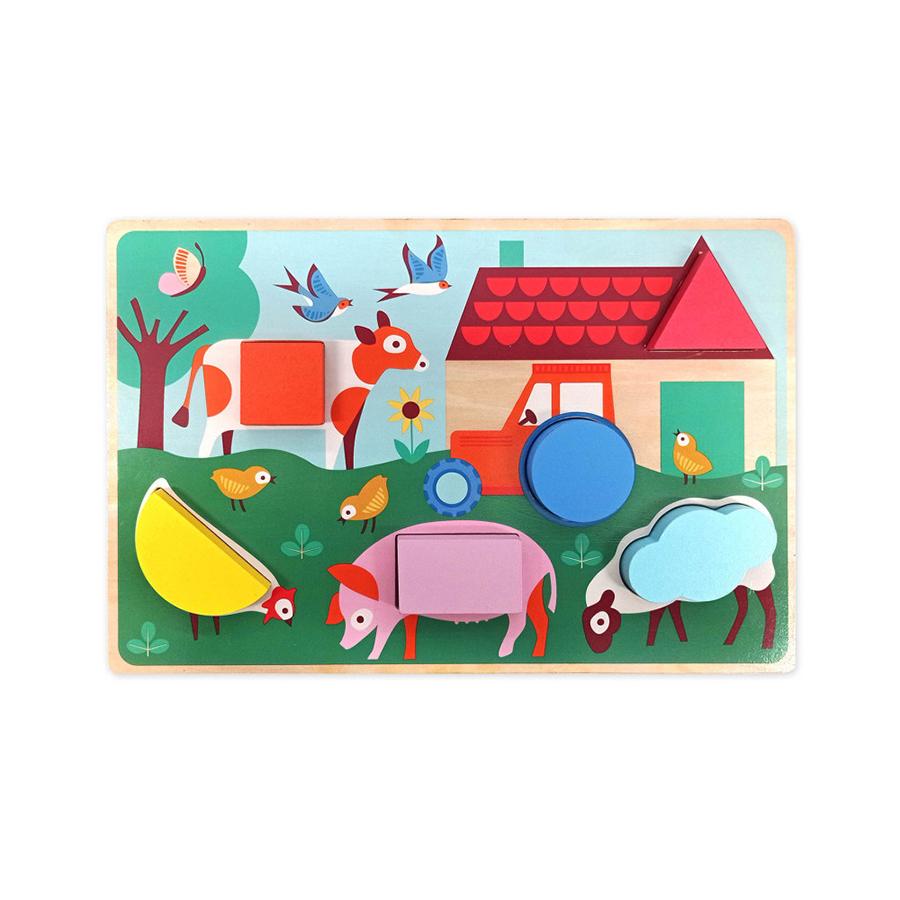 Ένα φανταστικό, ξύλινο παζλ εξαιρετικής ποιότητας, από την αγαπημένη μας Auzou, σχεδιασμένο για να βοηθά τα παιδιά στην ανάπτυξη των λεπτών κινητικών τους δεξιοτήτων και την ανακάλυψη και εκμάθηση των βασικών γεωμετρικών σχημάτων και χρωμάτων. Διαστάσεις συσκευασίας: 30 x 20 x 4 εκ. Ηλικία: Από 18 μηνών