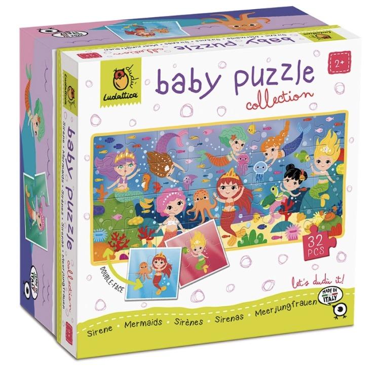 Ένα πρωτότυπο παζλ με 32 κομμάτια διπλής όψεως για τους μικρούς μας φίλους! Από την μία πλευρά, το παιδί συνθέτει 8 παζλ με τις πιο όμορφες και χαριτωμένες γοργόνες, και από την άλλη πλευρά, όλα μαζί τα κομμάτια μπορούν να συνθέσουν μια μεγάλη εικόνα, με όλες τις γοργόνες και τους θαλάσσιους φίλους τους μαζί! Έτσι το παιδί μπορεί να ξεκινήσει με τα μικρότερα παζλάκια και σταδιακά να μεταβεί στην ολοκλήρωση του μεγαλύτερου, αναπτύσσοντας τη συγκέντρωση, την παρατηρητικότητα και τη λογική σκέψη του!