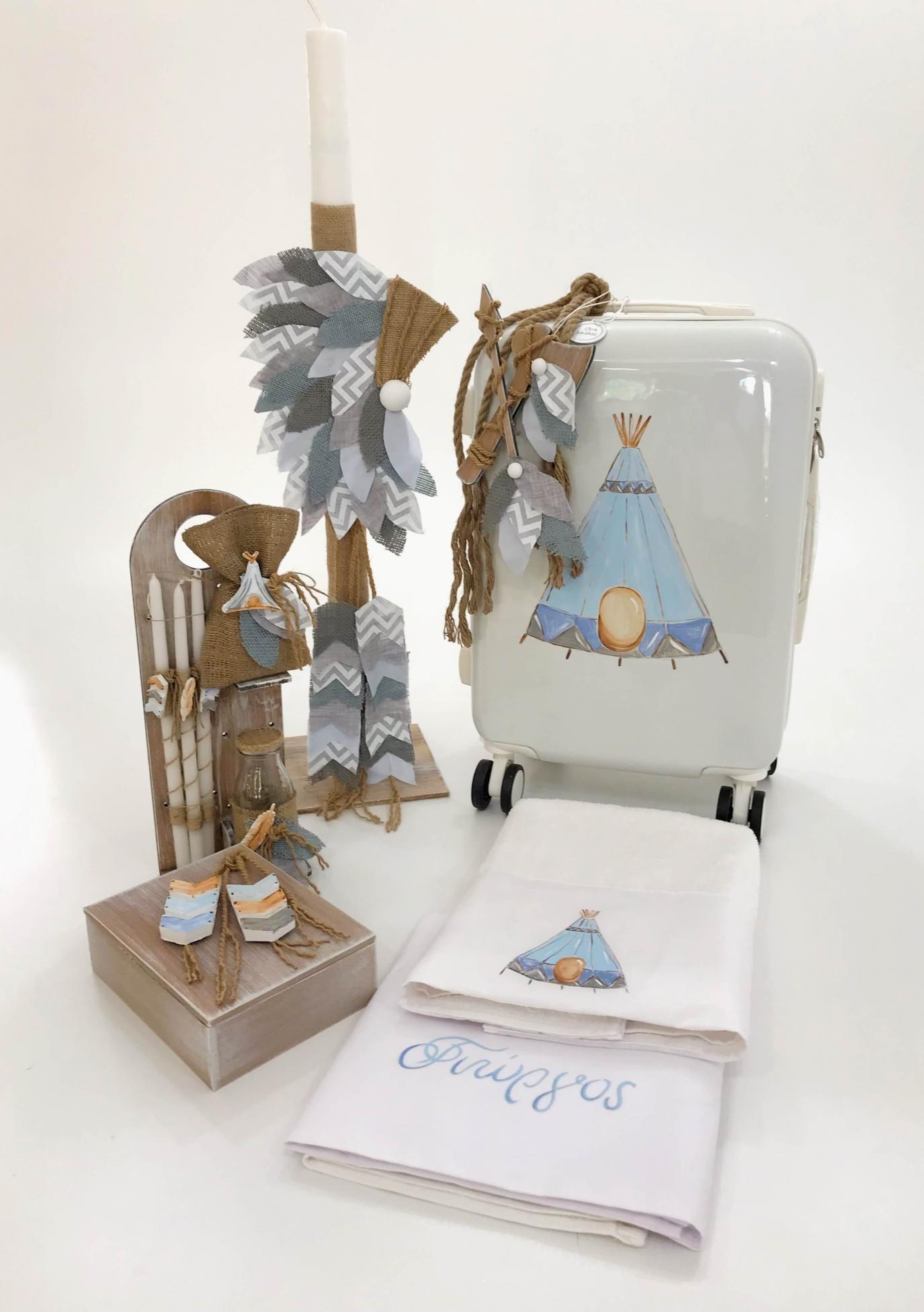 Η τιμή που εμφανίζεται αφορά το βαπτιστικό κουτί της φωτογραφίας με την κλασσική λαμπάδα και το λαδοσέτ του!