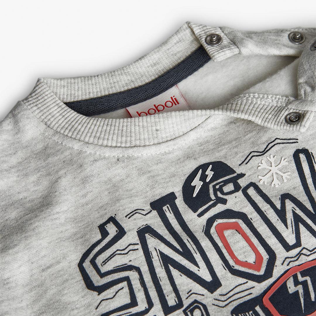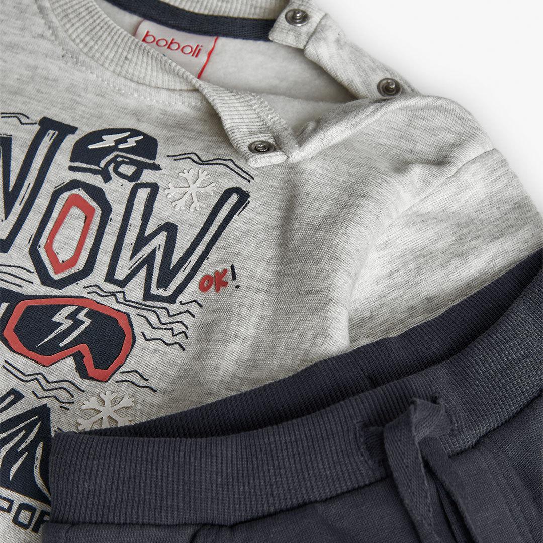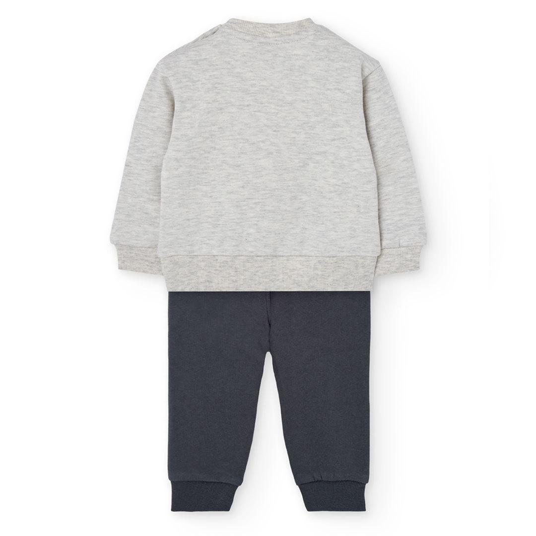 Pullover:100% cotton Trousers:60% cotton 38% polyester 2% elastane