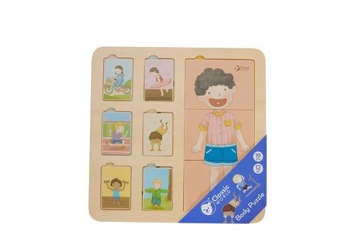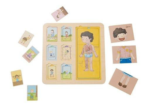 Αυτό το παζλ σώματος έχει 3 επίπεδα. Δείχνει τη δομή του σώματος από τους μύες, τα όργανα και τα οστά. Τα παιδιά ενθαρρύνονται να εξερευνήσουν τη σύνθεση του ανθρώπινου σώματος.