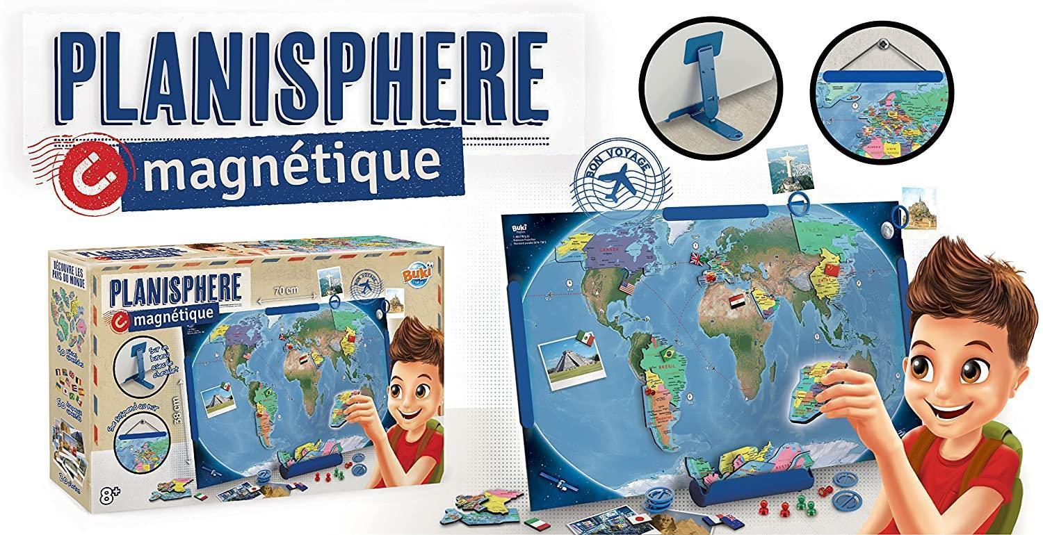 Το BUKI Μαγνητικό πλανητόσφαιρο είναι ο τέλειος τρόπος για να διδάξετε στα παιδιά σας τον κόσμο. Αυτός ο μεγάλος χάρτης μπορεί να κρεμαστεί σε έναν τοίχο ή να τοποθετηθεί σε ένα τραπέζι και συνοδεύεται από 50 μαγνητικές σημαίες και 10 καρφίτσες για να υποδεικνύει τις χώρες που επισκέφθηκε ή που το παιδί θέλει να επισκεφθεί. Ο χάρτης περιλαμβάνει επίσης ένα σύστημα καβαλέτου, ώστε να μπορεί να επιδεικνύεται εύκολα.