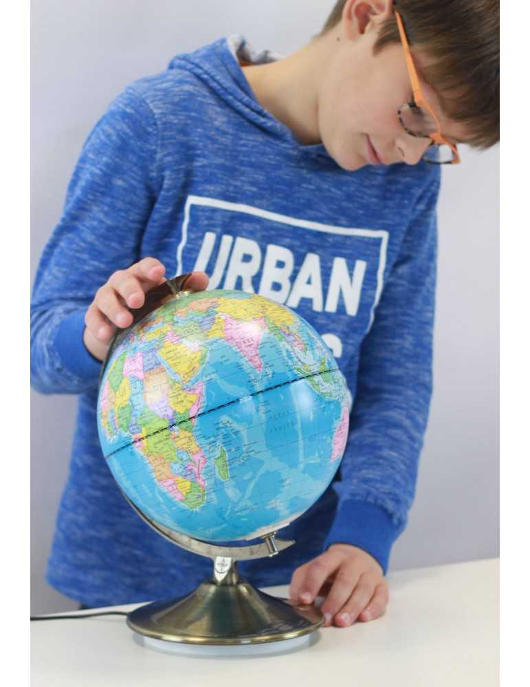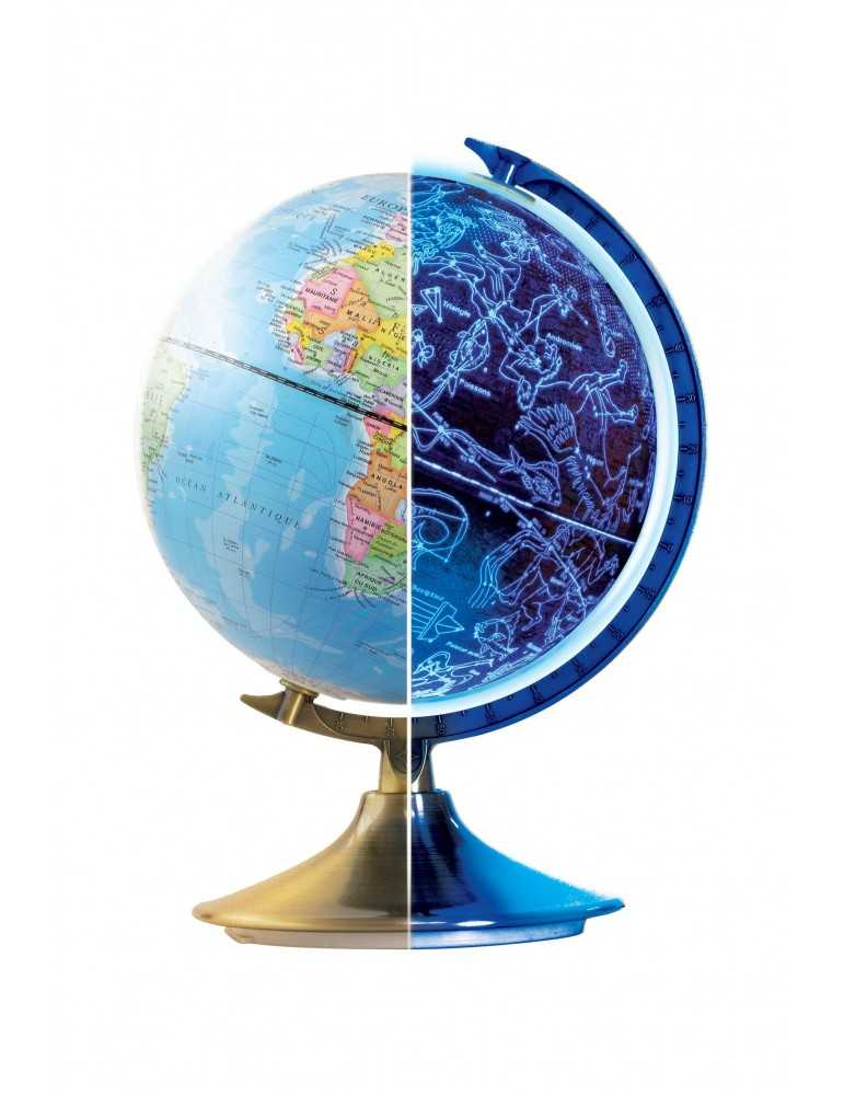 Σφαίρα 21 εκατοστών για να παρατηρήσετε τη γη κατά τη διάρκεια της ημέρας και τους αστερισμούς τη νύχτα. Το βράδυ, πατήστε το διακόπτη για να ενεργοποιήσετε τη νυχτερινή λειτουργία. Έρχεται με ένα εφεδρικό LED και ηλεκτρικό δίκτυο προσαρμογέας*. Ηλικια 8+