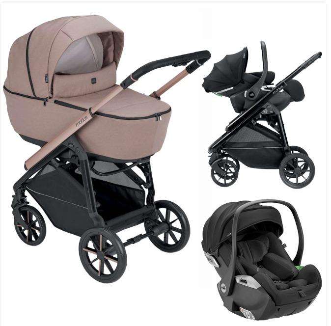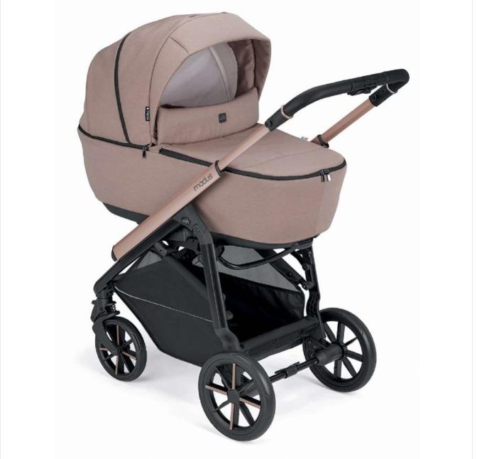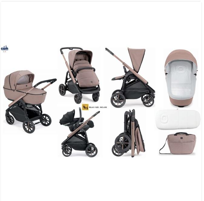 Με τσάντα που περιλαμβάνει αλλαξιέρα, ποδόσακο, καλάθι, αδιάβροχο κάλυμμα, σκελετό που κλείνει εύκολα και είναι εξαιρετικά συμπαγής, με αναρτήσεις και ρουλεμάν στους μπροστινούς και πίσω τροχούς.