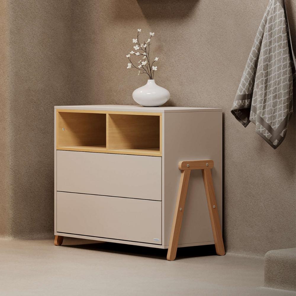 Συρταριέρα με 2 ευρύχωρα συρτάρια που παρέχουν επαρκή χώρο για όλα τα προϊόντα του μωρού σας και 2 ραφάκια.