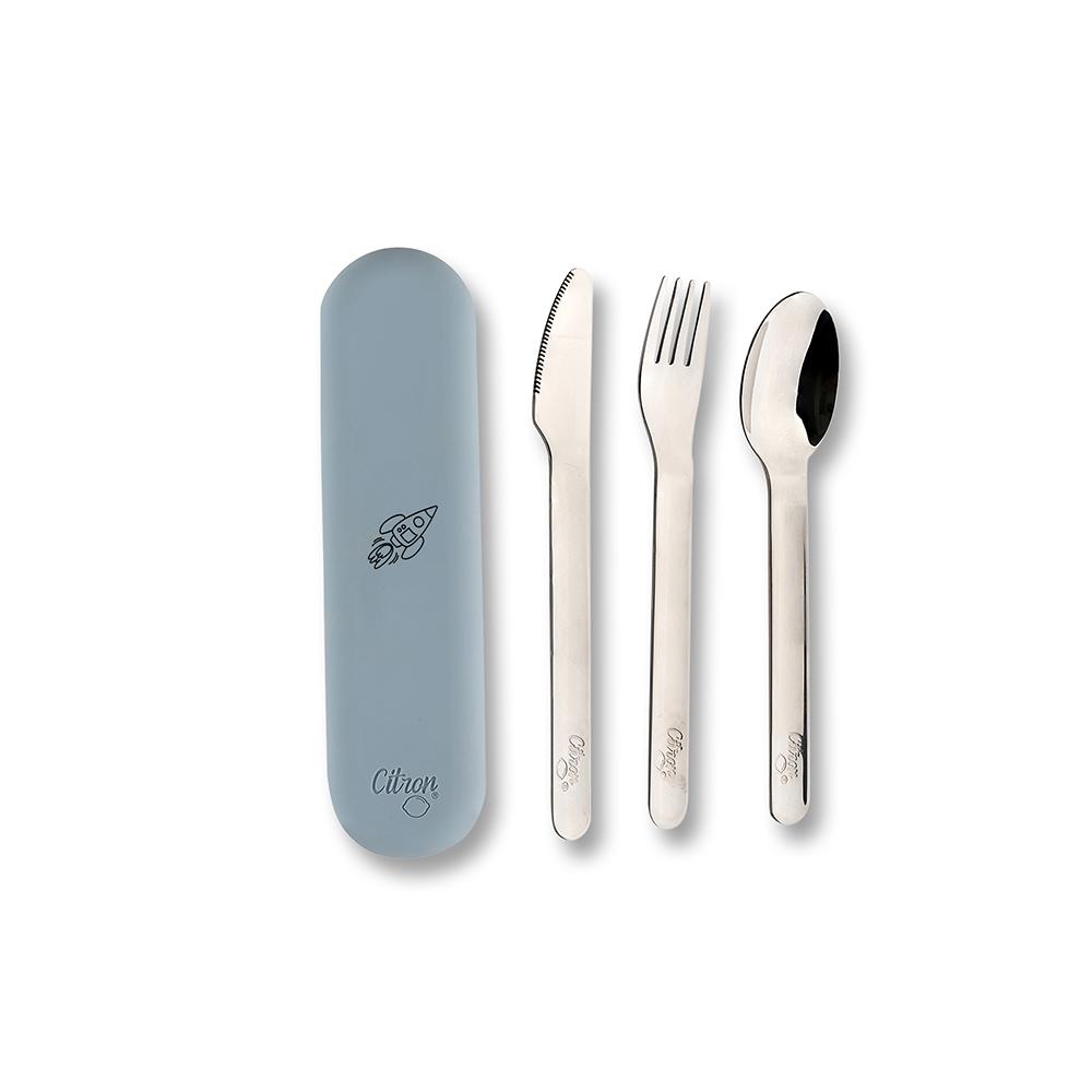 Citron Stainless Steel Cutlery Set with Silicon Case - Spaceship Dusty Blue CIT-73803