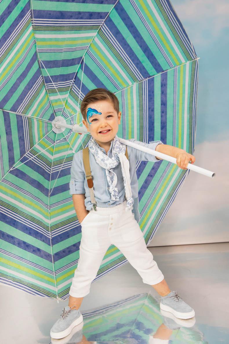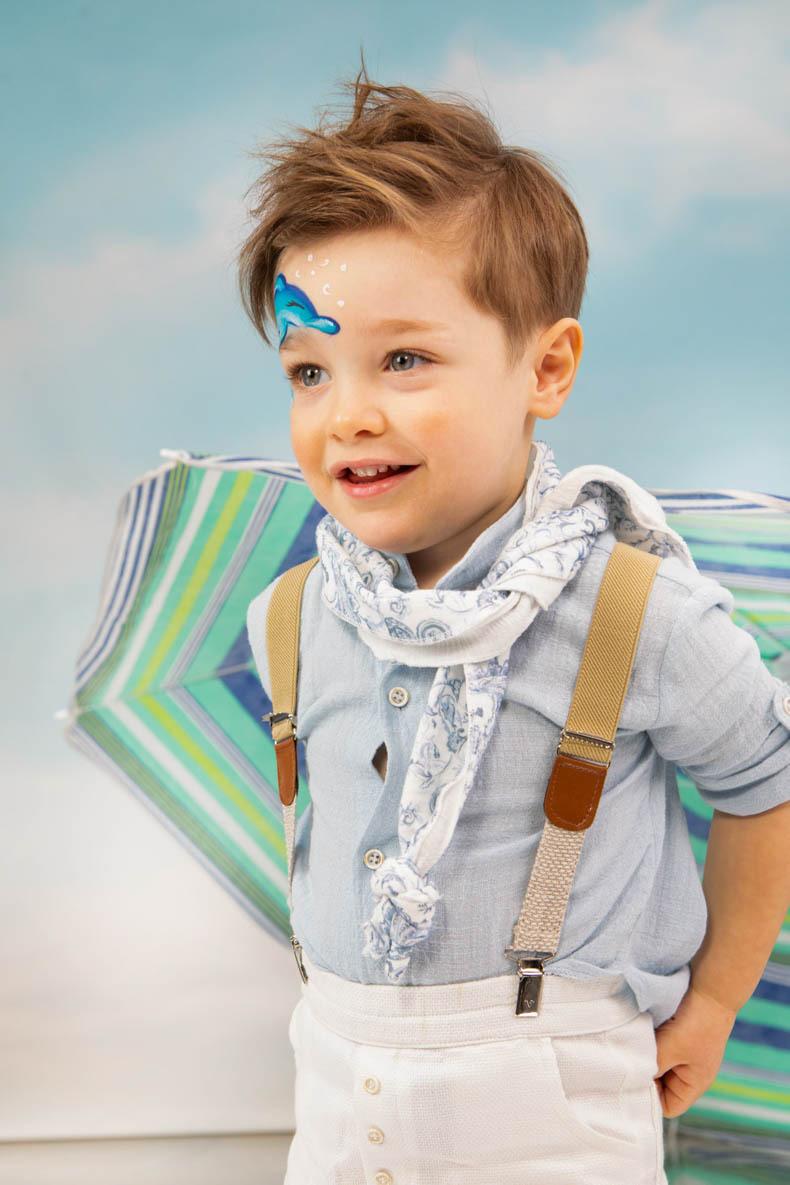 Ο David αποτελεί έναν ανάλαφρο συνδυασμό στα χρώματα του σιέλ και του λευκού. Πουκάμισο σιέλ από 100% soft cotton Ιταλίας. Παντελόνι λευκό από alternative καπαρντίνα με μπεζ τιράντες. Φουλάρι με printed σχέδιό με έκρου βαμβακερό 100% Καπέλο λευκό με printed τρεσσα σε συνδυασμό με το φουλάρι.