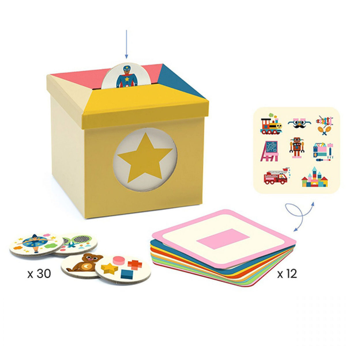 Εκπαιδευτικό παιχνίδι παρατήρησης και ταξινόμησης Kioukoi από την εταιρεία Djeco. Τα παιδιά χρησιμοποιούν το κριτήριο σχήματος για να ομαδοποιήσουν τα παιχνίδια που απεικονίζονται στις στρογγυλές κάρτες. Μια διασκεδαστική εισαγωγή στον κόσμο της ταξινόμησης, οργάνωσης και τακτοποίησης. Η λύση υπάρχει στο πίσω μέρος κάθε κάρτας κριτηρίων. Το παιχνίδι αυτό βοηθά το παιδί να αναπτύξει δεξιότητες παρατήρησης.