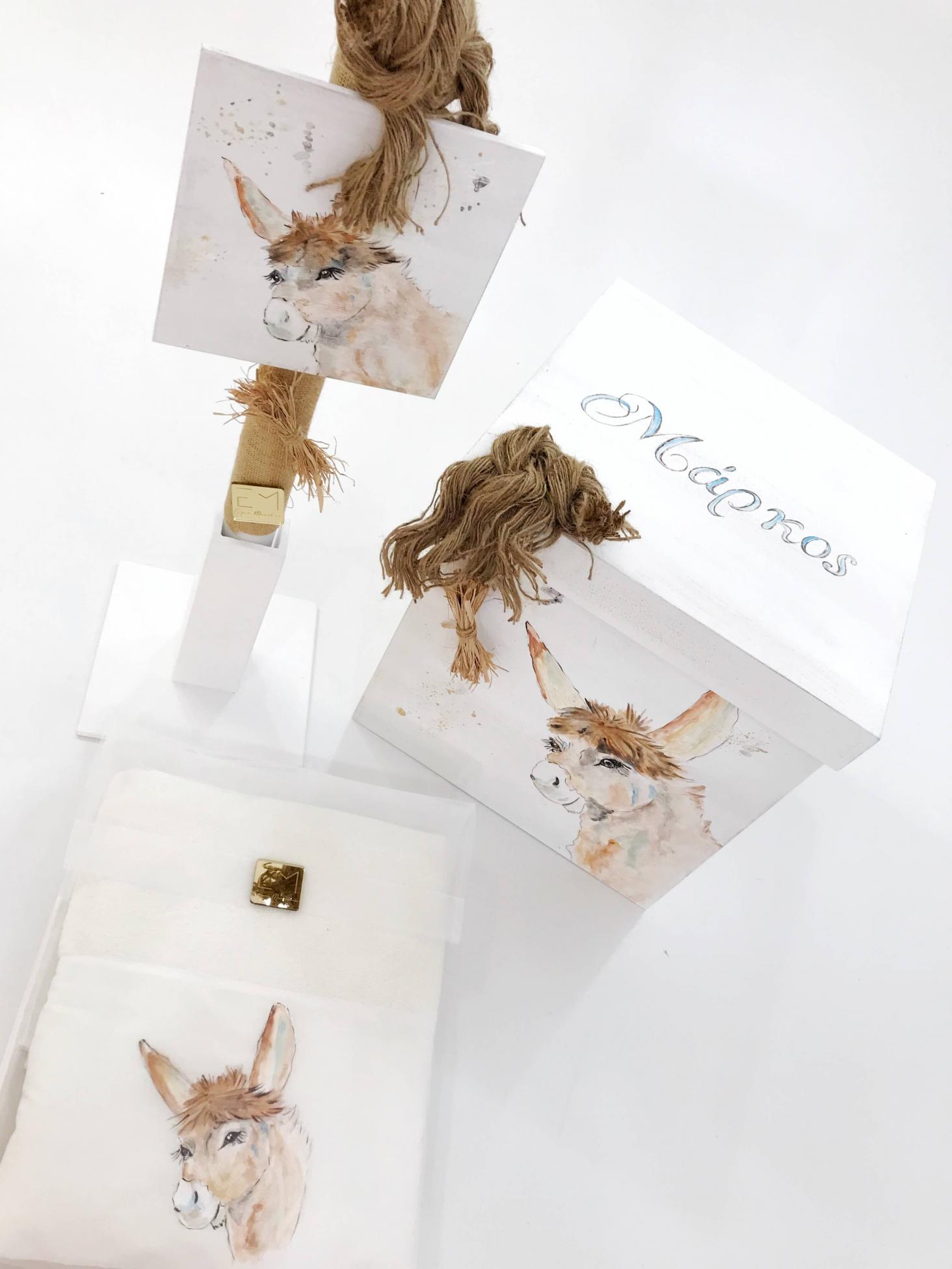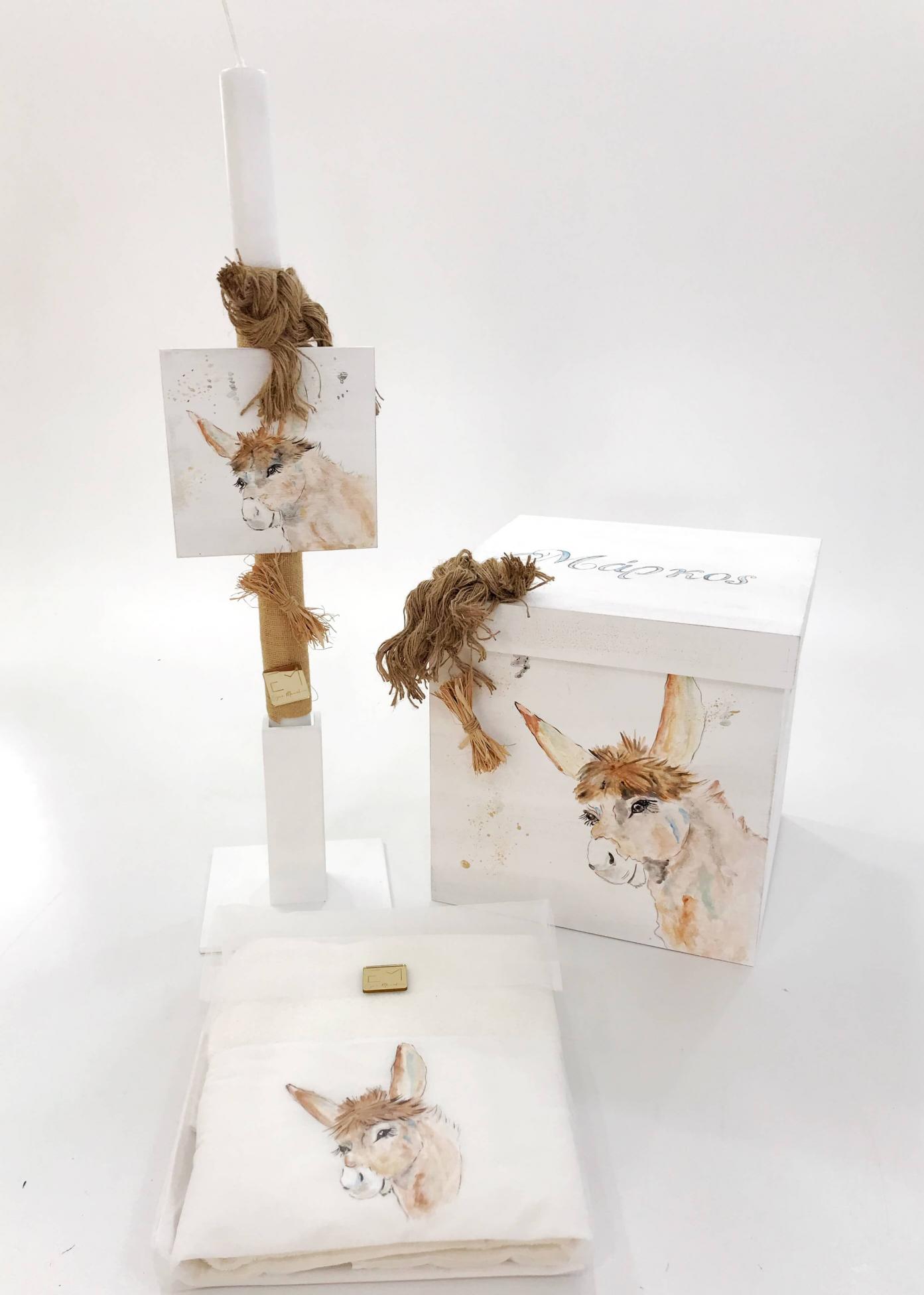 Η τιμή που εμφανίζεται αφορά το βαπτιστικό κουτί της φωτογραφίας με την κλασσική λαμπάδα και το λαδοσέτ του!