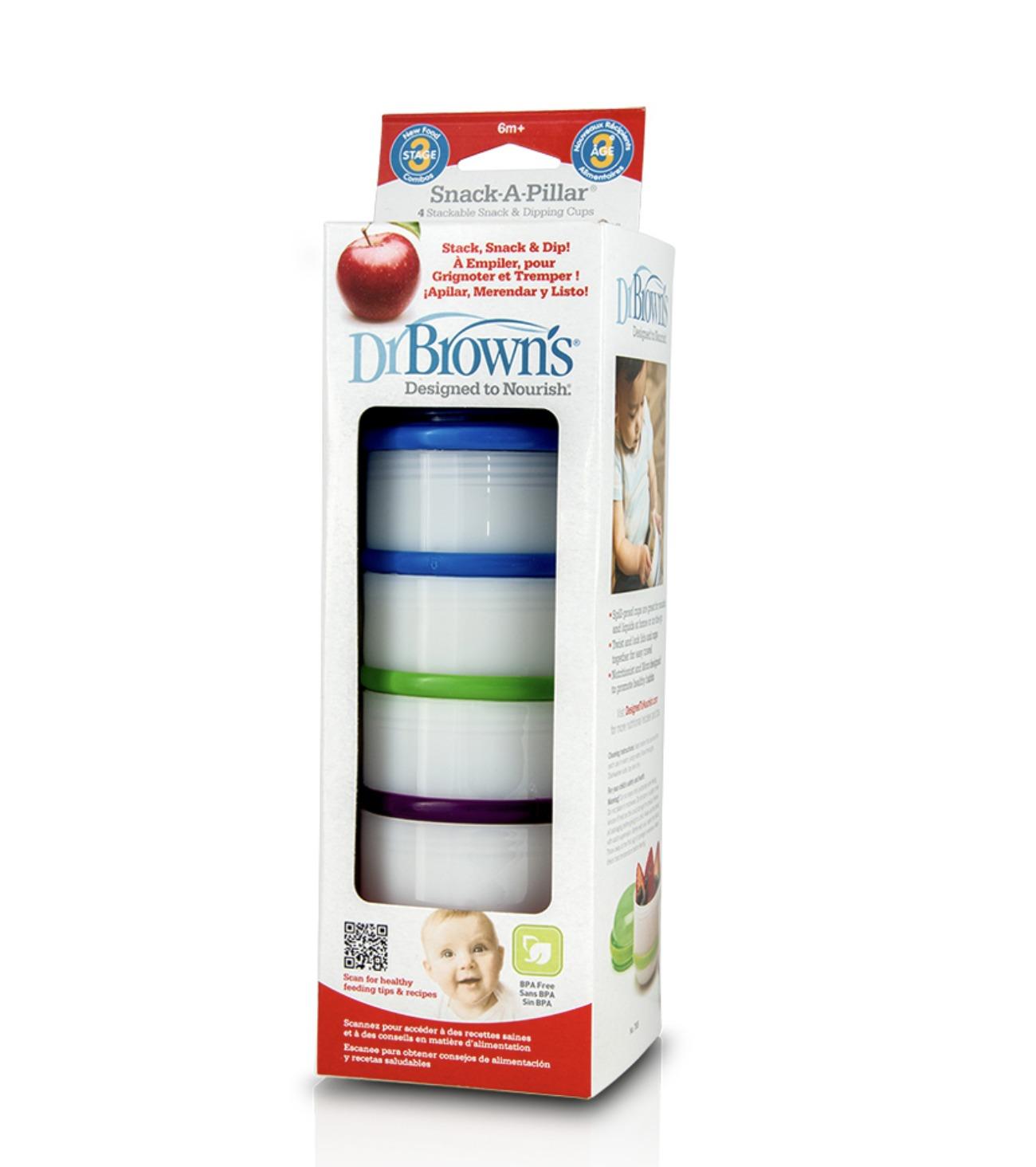 Τα πρακτικά Snack A Pillar Κυπελάκια Αποθήκευσης Φαγητού 6m+ της Dr Brown’s είναι ιδανικά για το κολατσιό και τη ρευστή τροφή του μωρού.
