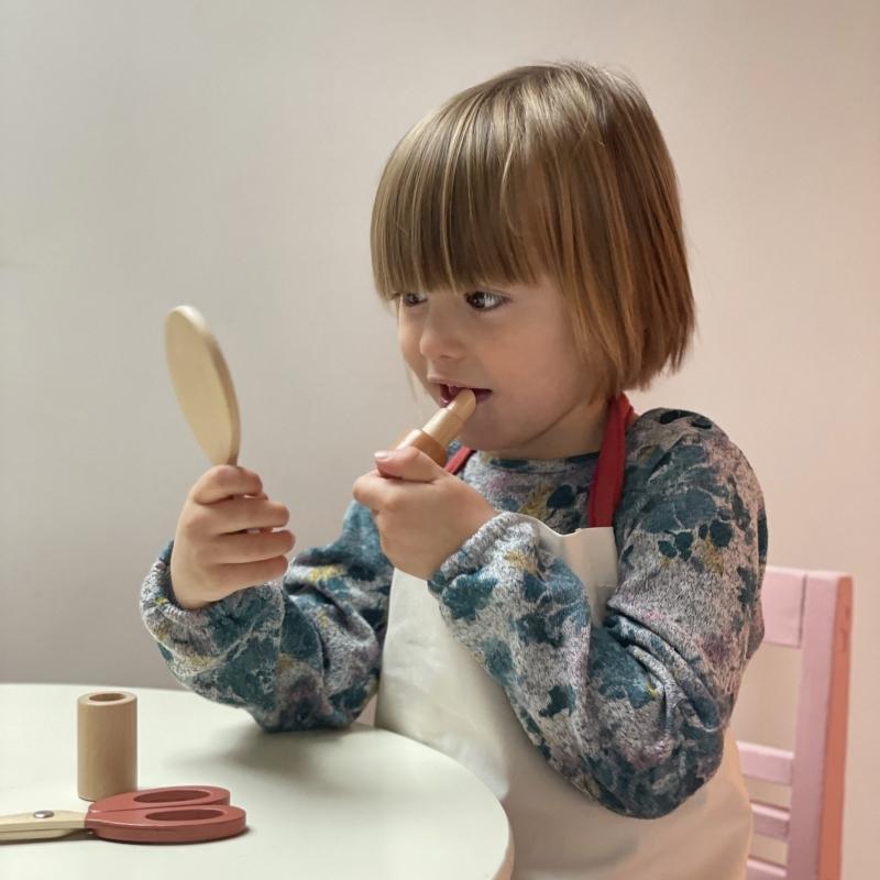 Στην υφασμάτινη θήκη περιλαμβάνονται τα πάντα: βούρτσα μαλλιών, κραγιόν, ψαλίδι, καθρέφτης, πιστολάκι μαλλιών και άρωμα. 3 ετών +