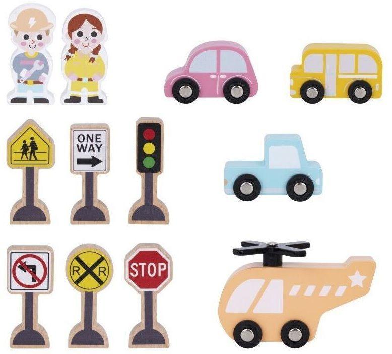 EliNeli Montessori Ξύλινο Εκπαιδευτικό Παιχνίδι Γκαράζ Με Φιγούρες και Σήματα Eli Neli EN1106