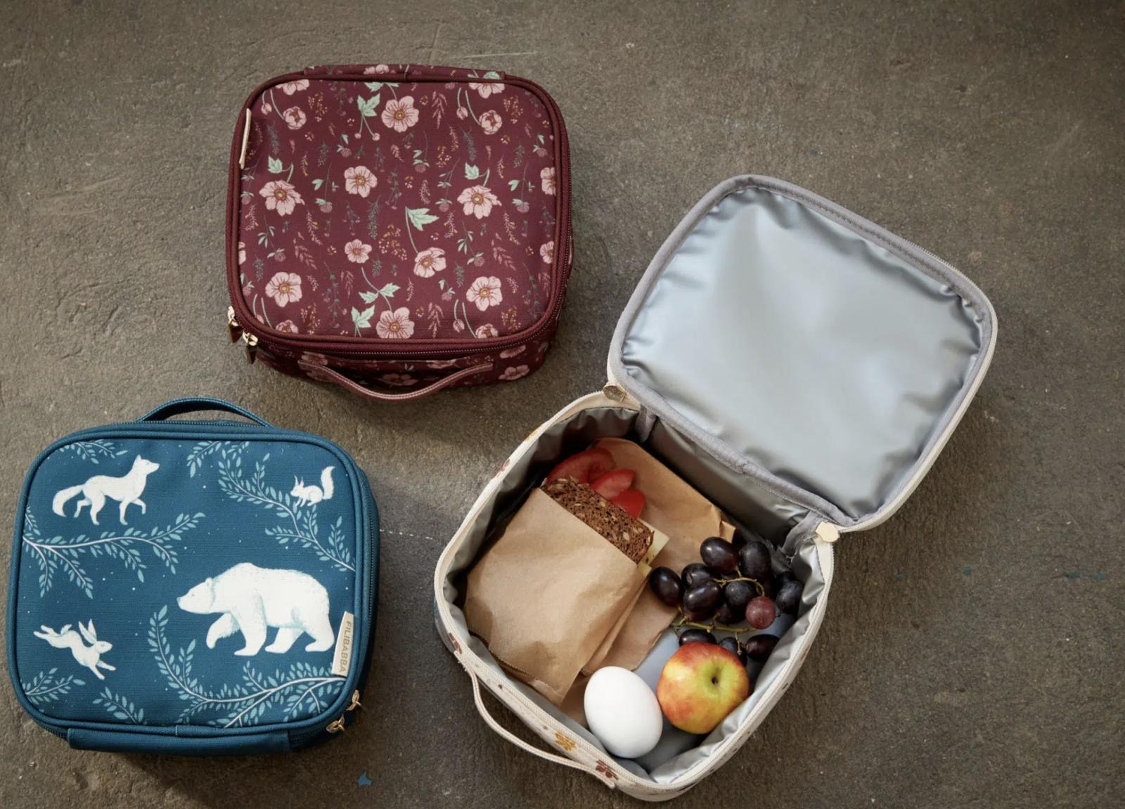 Για το εξωτερικό ύφασμα, χρησιμοποιήσαμε ανακυκλωμένο πολυεστέρα RPET *, ο οποίος είναι ανθεκτικός και σκουπίζεται εύκολα. Το θερμικό στρώμα είναι κατασκευασμένο από βινύλιο, το οποίο σε συνδυασμό με μερικά στοιχεία ψύξης διατηρεί το φαγητό του παιδιού σας κρύο ή ζεστό για πολλές ώρες.