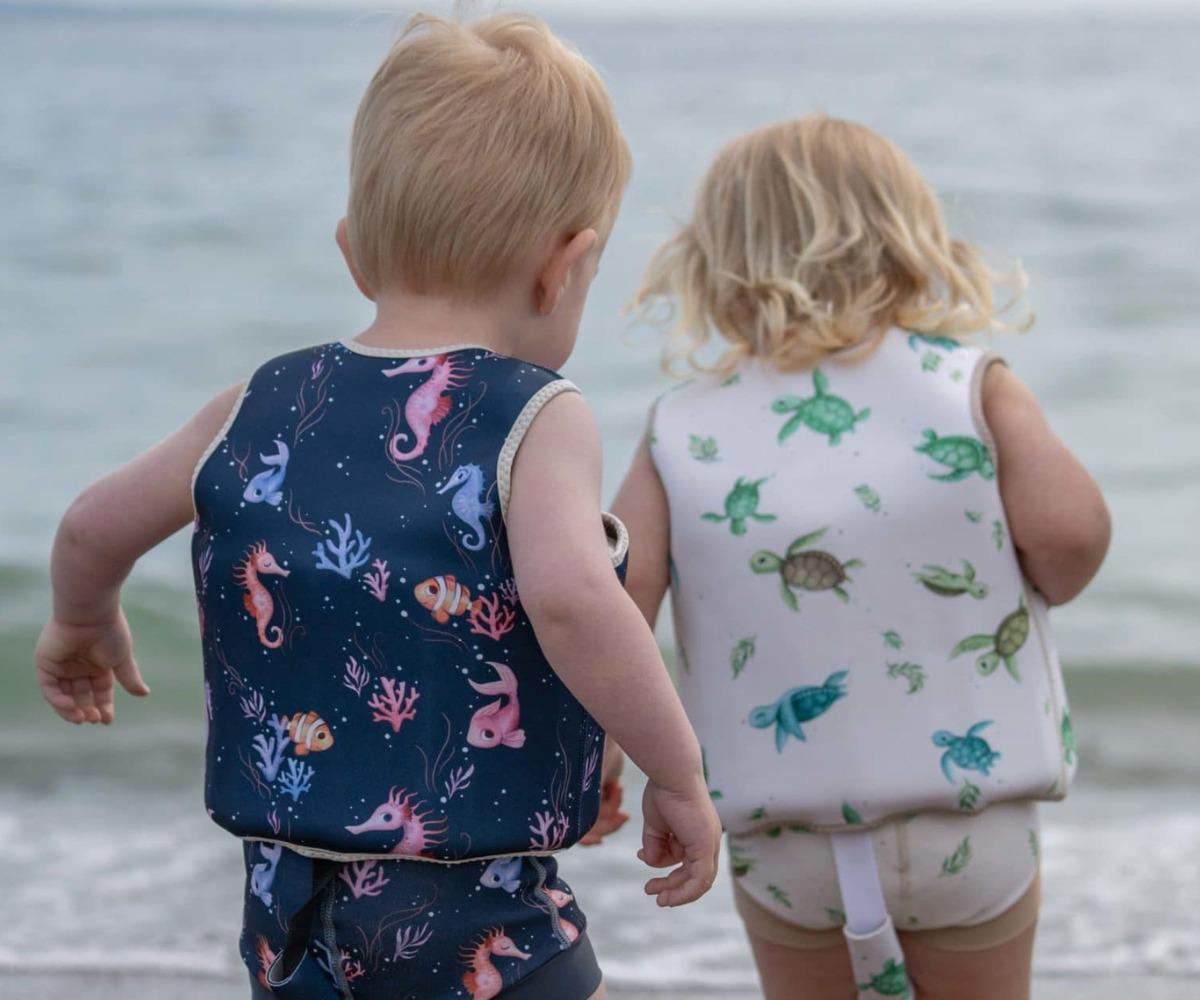 Το γιλέκο κολύμβησης προσαρμόζεται εύκολα στο παιδί σας βελτιώνοντας τις κολυμβητικές του ικανότητες – χάρη στα αφαιρούμενα στοιχεία αφρού, μπορείτε να καθορίσετε πόσο το γιλέκο στηρίζει το μικρό σας στο νερό. Μόλις το παιδί σας κολυμπήσει ανεξάρτητο, το γιλέκο μπορεί ακόμα να χρησιμοποιηθεί για αυξημένη προστασία από την υπεριώδη ακτινοβολία.