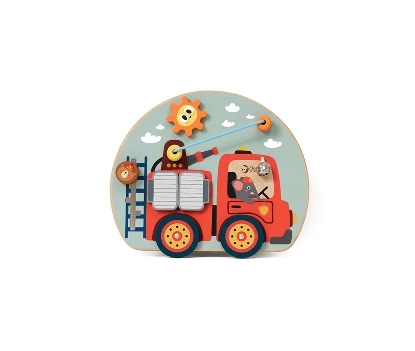 Ο πίνακας με θέμα την πυροσβεστική θα κρατήσει το παιδί απασχολημένο με τον καλύτερο τρόπο. Συνδυάζει γρανάζια, χάντρες, λαβύρινθο, κουδουνάκια και τροχούς. Πίσω από τις πόρτες κρύβεται μια έκπληξη!